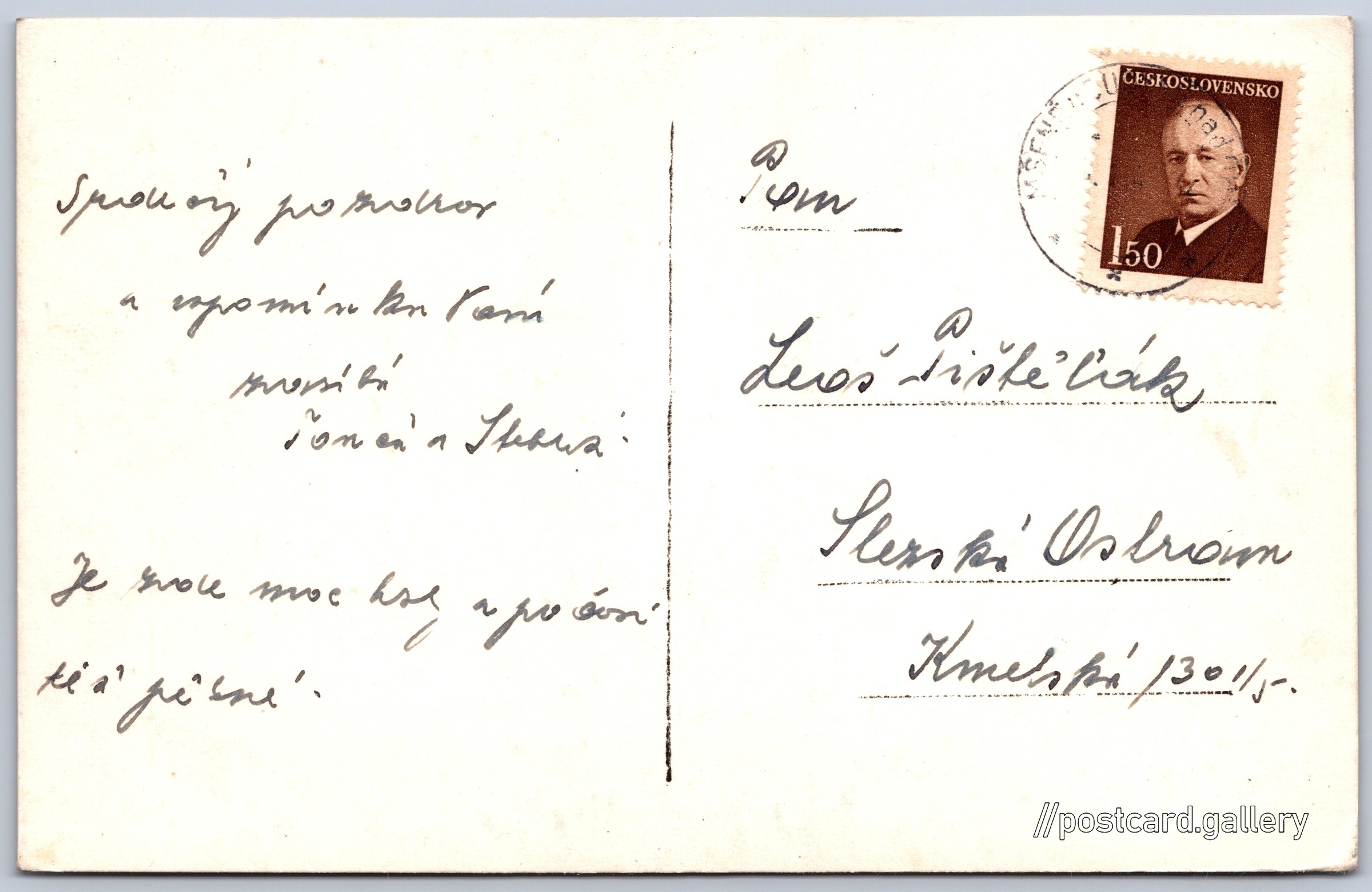 Lázně Mšené Pokud chcete vidět pohlednice ve vyšším rozlišení nebo zobrazovat jejich zadní stranu, tak se prosím nejdříve přihlašte Přihlásit Zaregistrovat Lázně Mšené Jazyk tištěného textu na pohlednici: čeština Lázně Mšené, Lázeňské místo, Mšené-lázně, Česko ukázat na mapě Přesné místo není známo. Pokud jej znáte, tak jej prosím napište do komentářů nebo označte na mapě Odhadované datum vydání pohlednice: 1948 - 1953 Pomozte nám zpřesnit rok vzniku pohlednice Velikost (š x v) a tvar pohlednice: 141 x 90 mm (5.55" x 3.54"), obdélník Prošlá poštou Ceny: Vyplacené známky: 1,50 Kčs (CSK) DiskuseVložit příspěvek Přidat novou složku ... Spravovat složky ...
