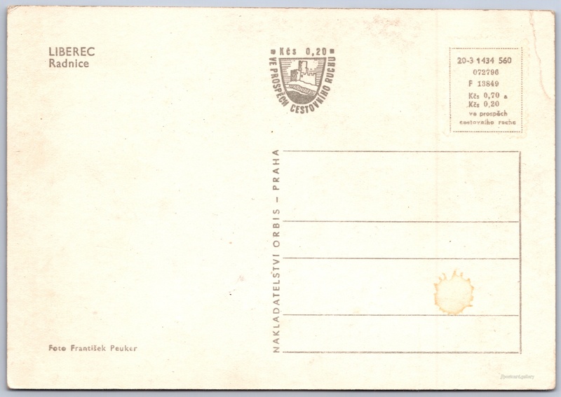 Cena pohlednice: 0,70 Kčs (CSK) (+0,20 Kčs přípl. na tur. ruch)