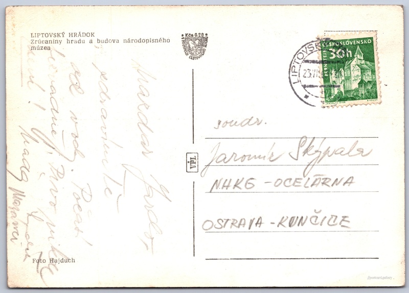 Liptovský Hrádok, zřícenina hradu Pokud chcete vidět pohlednice ve vyšším rozlišení nebo zobrazovat jejich zadní stranu, tak se prosím nejdříve přihlašte Přihlásit Zaregistrovat LIPTOVSKÝ HRÁDOKZrúcaniny hradu a budova národopisného múzea Jazyk tištěného textu na pohlednici: slovenština ČSA 28 ukázat na mapě V blízkém okolí místa zobrazeného na pohlednici lze najít 9 jiných pohlednic. Zobrazit blízké pohlednice Vydavatel: VPL (Československo) Odhadované datum vydání pohlednice: 1960 - 1963 Pomozte nám zpřesnit rok vzniku pohlednice Velikost (š x v) a tvar pohlednice: 145 x 102 mm (5.71" x 4.02"), obdélník Osoby spjaté s touto pohlednicí: Ján Hajduch(Autor fotografie) Prošlá poštou:Datum na razítku: 23.7.1963 Ceny: Příplatek na tur. ruch: 0,20 Kčs (CSK))Vyplacené známky: 0,30 Kčs (CSK) DiskuseVložit příspěvek Přidat novou složku ... Spravovat složky ...