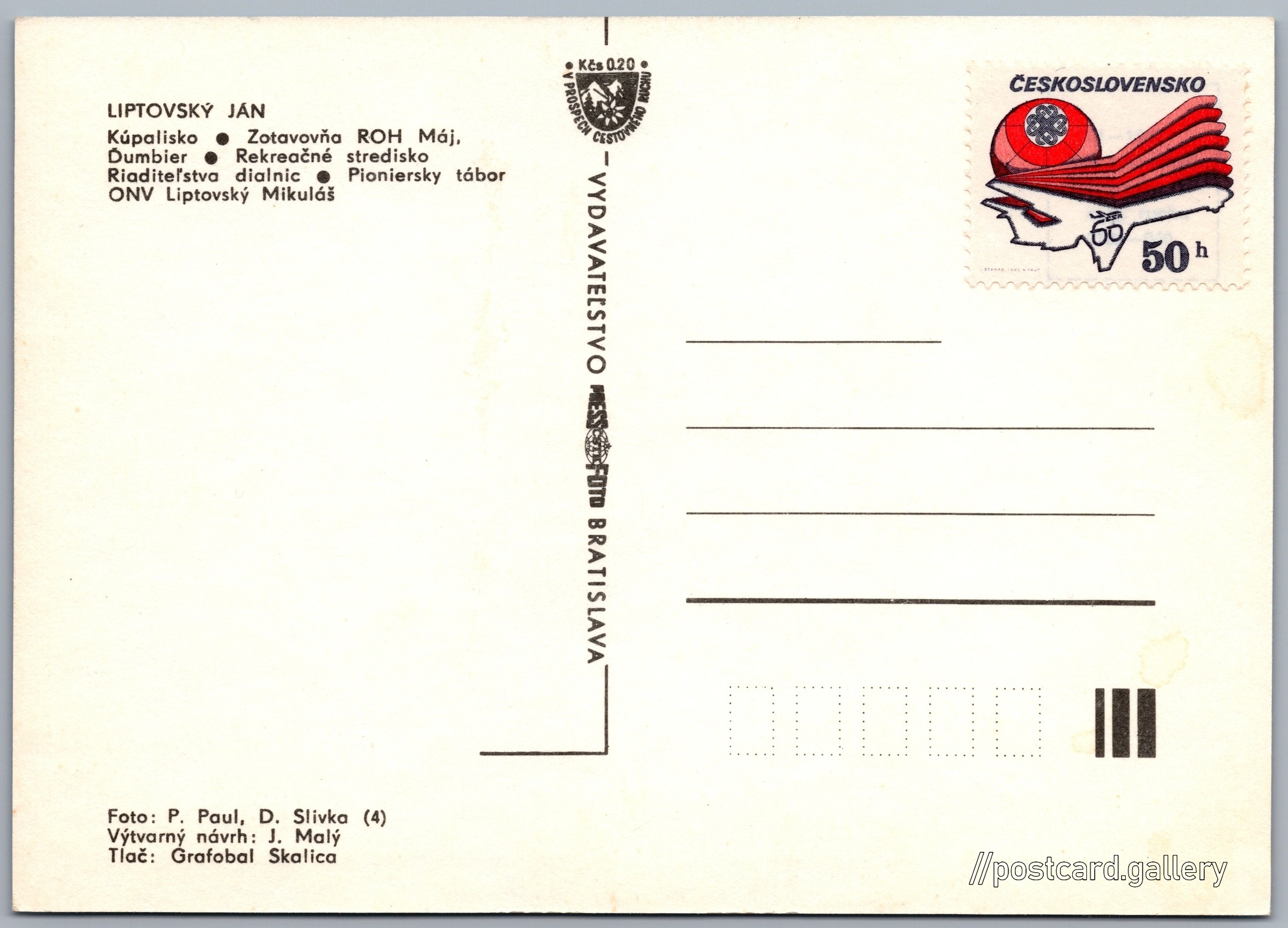 Liptovský Ján Pokud chcete vidět pohlednice ve vyšším rozlišení nebo zobrazovat jejich zadní stranu, tak se prosím nejdříve přihlašte Přihlásit Zaregistrovat Liptovský Ján Liptovský Ján- Kúpalisko- Zotavovňa ROH Máj- Ďumbier- Rekreačné stredisko- Riaditeľstva dialnic- Pioniersky tábor- ONV Liptovský Mikuláš Jazyk tištěného textu na pohlednici: slovenština Termálne kúpalisko, Zahrada, park, Liptovský Ján 2008, Liptovský Ján, Slovensko ukázat na mapě V blízkém okolí místa zobrazeného na pohlednici lze najít 8 jiných pohlednic. Zobrazit blízké pohlednice Vydavatel: PressFoto Bratislava (Československo) Datum vydání není známo Pomozte nám odhadnout datum vzniku pohlednice Velikost (š x v) a tvar pohlednice: 148 x 106 mm (5.83" x 4.17"), obdélník Osoby spjaté s touto pohlednicí: Petr Paul(Design pohlednice) D. Slivka(Design pohlednice) J. Malý(Design pohlednice) Čistá pohlednice (neprošlá poštou) Vložit příspěvek(3 příspěvky) Přidat novou složku ... Spravovat složky ... Anonymní uživatel: Date (year) of creation of the postcard: 1989 20.6.2023 22:22 odpovědět Anonymní uživatel: Text k pohlednici 20.6.2023 22:18 odpovědět Anonymní uživatel: Dfghjtt vbfdycde fvdrgfd 20.6.2023 22:19 odpovědět