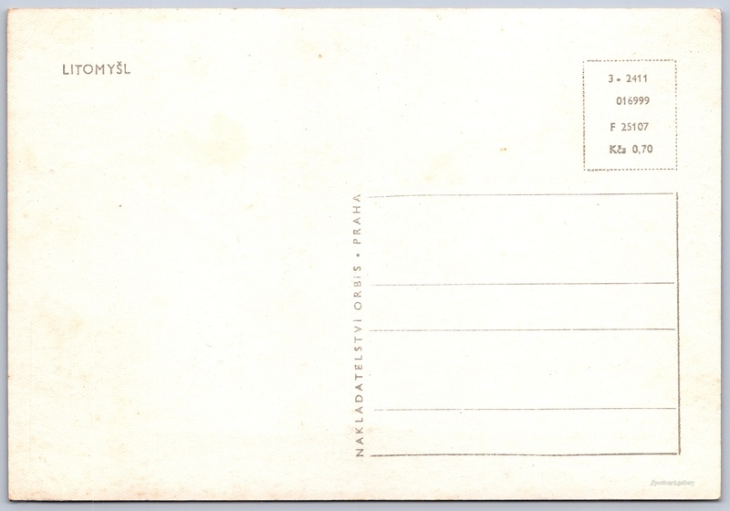 Litomyšl, centrum města Pokud chcete vidět pohlednice ve vyšším rozlišení nebo zobrazovat jejich zadní stranu, tak se prosím nejdříve přihlašte Přihlásit Zaregistrovat LITOMYŠL Jazyk tištěného textu na pohlednici: čeština Smetanovo náměstí, Litomyšl, Svitavy ukázat na mapě V blízkém okolí místa zobrazeného na pohlednici lze najít 6 jiných pohlednic. Zobrazit blízké pohlednice Vydavatel: Nakladatelství Orbis (Československo) Datum vydání není známo Pomozte nám odhadnout datum vzniku pohlednice Velikost (š x v) a tvar pohlednice: 147 x 101 mm (5.79" x 3.98"), obdélník Čistá pohlednice (neprošlá poštou) Ceny: Cena pohlednice: 0,70 Kčs (CSK) Kódy na pohlednici: 3-2411 016999 F 25107 DiskuseVložit příspěvek Přidat novou složku ... Spravovat složky ...