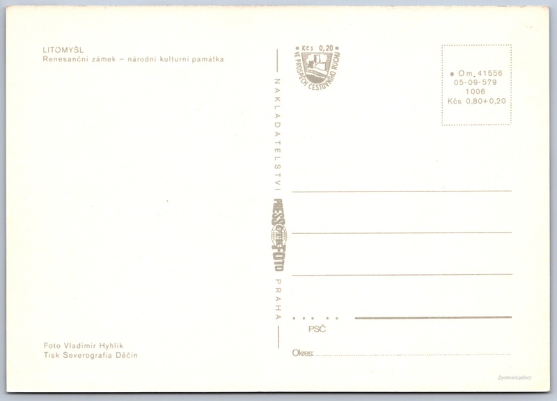 Litomyšl, renesanční zámek 1/6 Pokud chcete vidět pohlednice ve vyšším rozlišení nebo zobrazovat jejich zadní stranu, tak se prosím nejdříve přihlašte Přihlásit Zaregistrovat LITOMYŠLRenesanční zámek - národní kulturní památka Jazyk tištěného textu na pohlednici: čeština Záhradí, Litomyšl, Svitavy ukázat na mapě V blízkém okolí místa zobrazeného na pohlednici lze najít 6 jiných pohlednic. Zobrazit blízké pohlednice Vydavatel: PressFoto Praha (Československo) Rok vydání pohlednice: 1975 Velikost (š x v) a tvar pohlednice: 148 x 105 mm (5.83" x 4.13"), obdélník Osoby spjaté s touto pohlednicí: Vladimír Hyhlík(Autor fotografie) Čistá pohlednice (neprošlá poštou) Ceny: Cena pohlednice: 0,80 Kčs (CSK) (+0,20 Kčs přípl. na tur. ruch) Kódy na pohlednici: •Om 41556 05-09-579 1006 DiskuseVložit příspěvek Přidat novou složku ... Spravovat složky ...