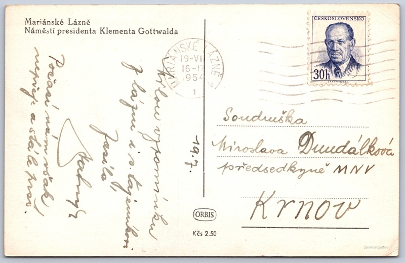 Datum napsání pohledu: 19.7.1954