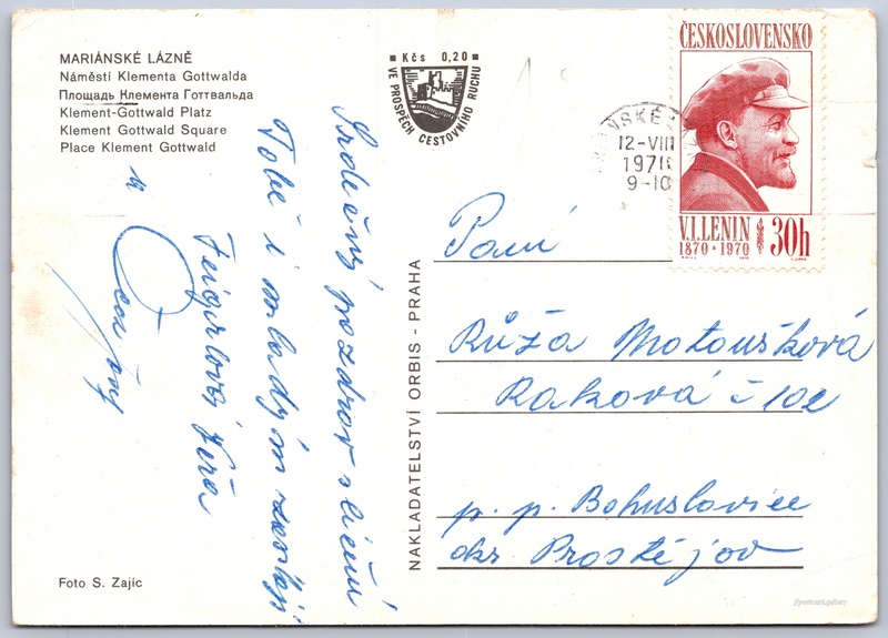 Jazyky tištěného textu na pohlednici: