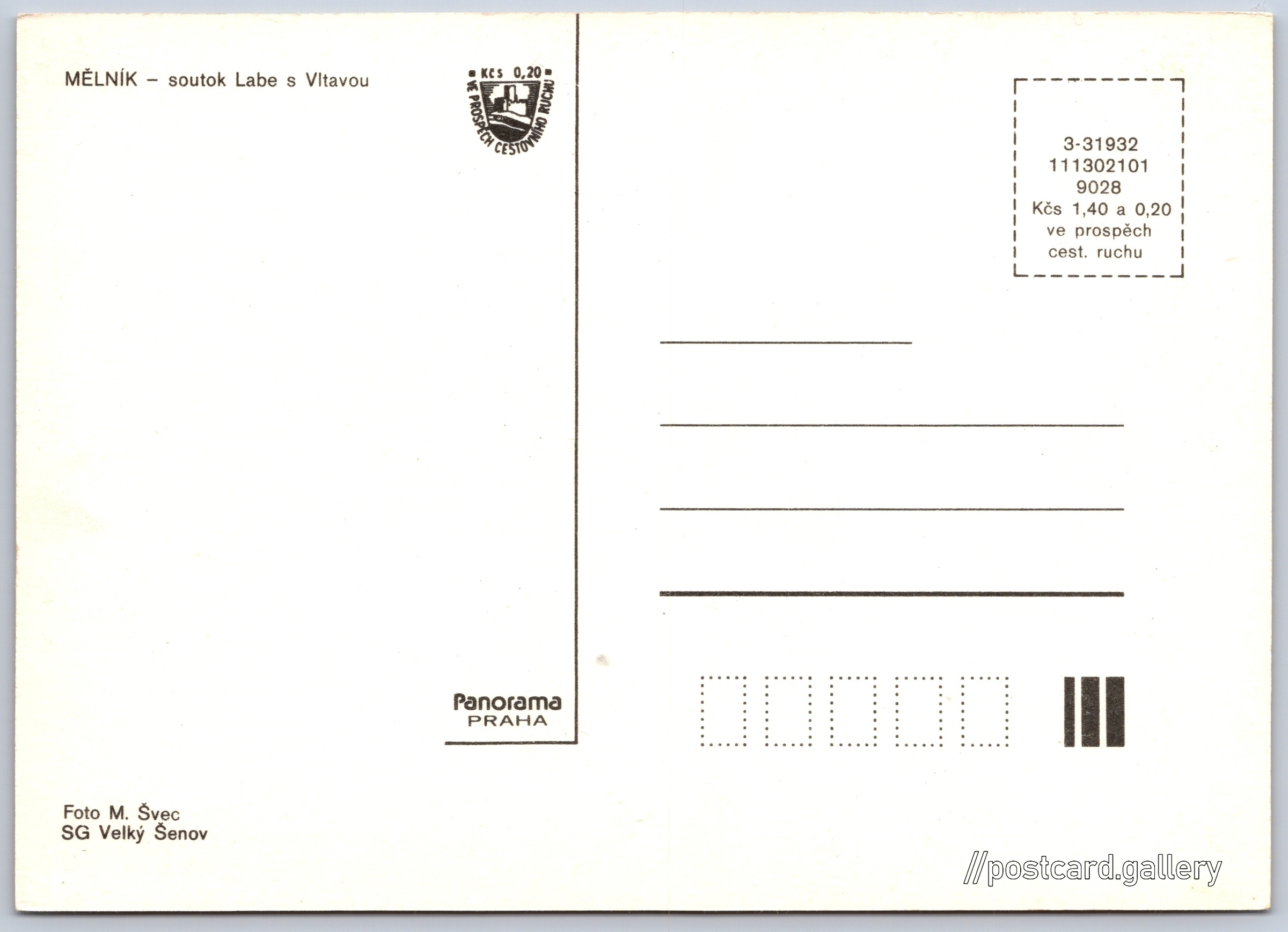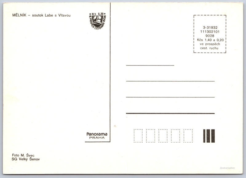 Mělník, soutok Labe a Vltavy 1/4 Pokud chcete vidět pohlednice ve vyšším rozlišení nebo zobrazovat jejich zadní stranu, tak se prosím nejdříve přihlašte Přihlásit Zaregistrovat Mělník MĚLNÍK - soutok Labe s Vltavou Jazyk tištěného textu na pohlednici: čeština Vltava, km 0 - ústí do Labe, Soutok (vodní turistika), Hořín, Česko ukázat na mapě V blízkém okolí místa zobrazeného na pohlednici lze najít 11 jiných pohlednic. Zobrazit blízké pohlednice Vydavatel: Panorama (Československo) Datum vydání není známo Pomozte nám odhadnout datum vzniku pohlednice Velikost (š x v) a tvar pohlednice: 148 x 106 mm (5.83" x 4.17"), obdélník Osoby spjaté s touto pohlednicí: M. Švec(Autor fotografie) Čistá pohlednice (neprošlá poštou) Ceny: Cena pohlednice: 1,40 Kčs (CSK) (+0,20 Kčs přípl. na tur. ruch) Kódy na pohlednici: 3-31932 111302101 9028 DiskuseVložit příspěvek Přidat novou složku ... Spravovat složky ...