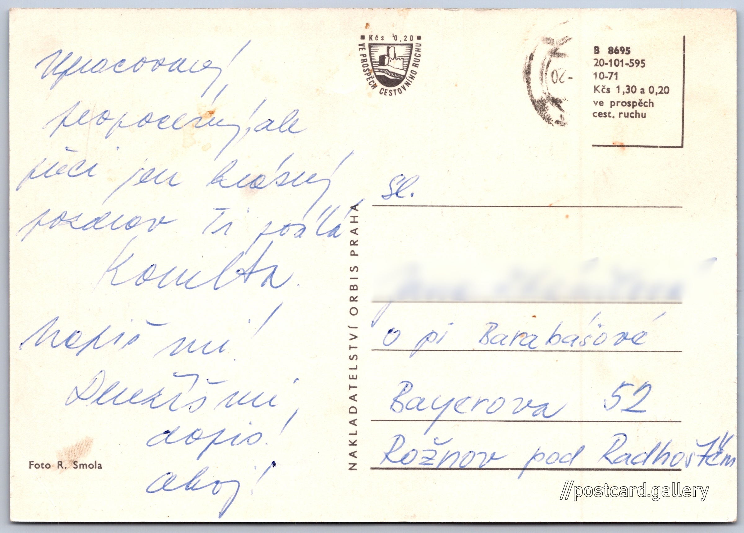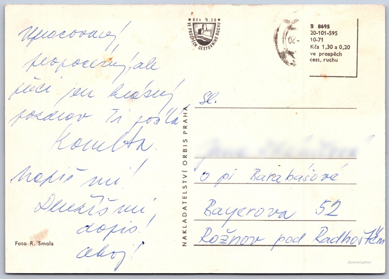 Cena pohlednice: 1,30 Kčs (CSK) (+0,20 Kčs přípl. na tur. ruch)