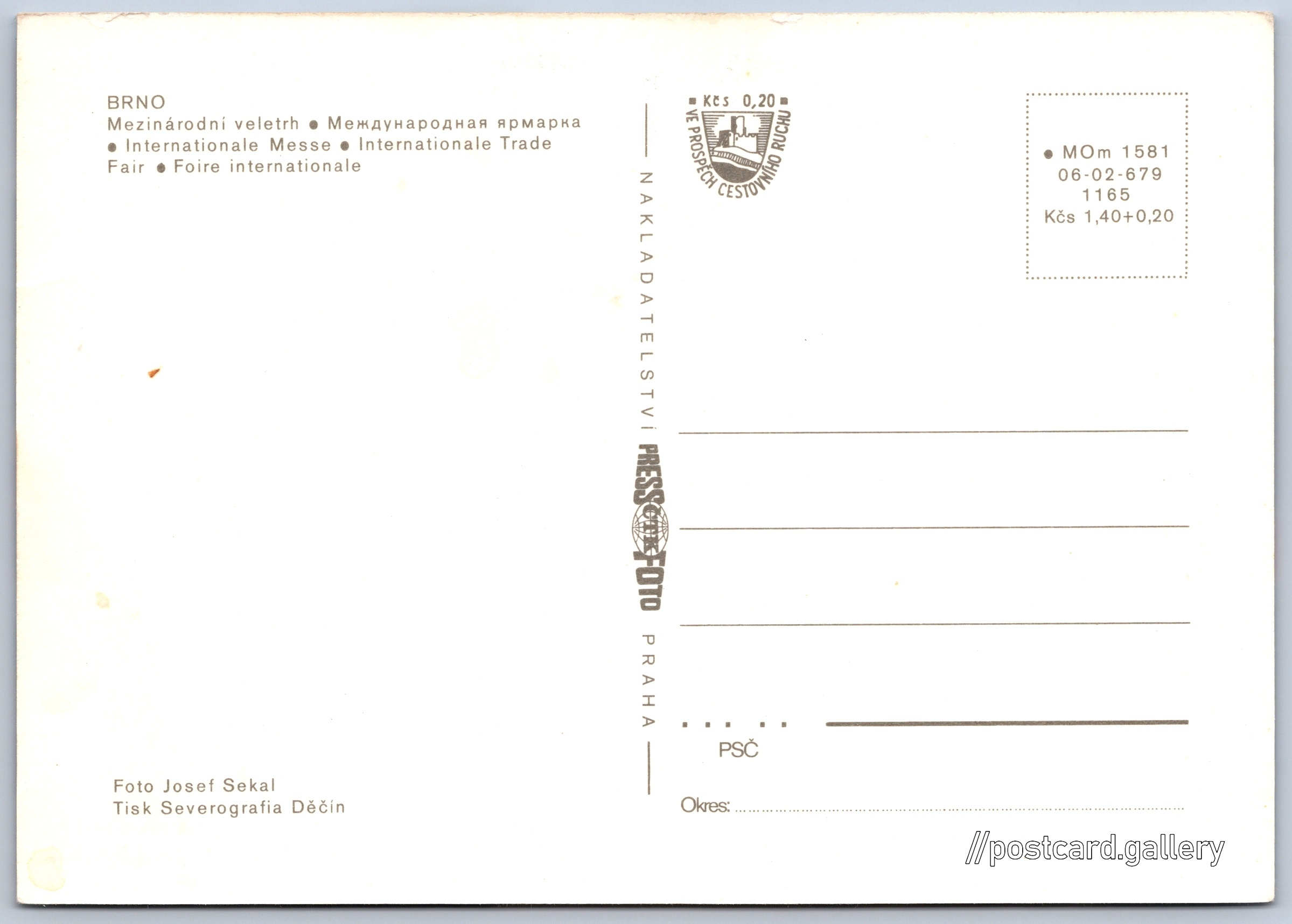 Cena pohlednice: 1,40 Kčs (CSK) (+0,20 Kčs přípl. na tur. ruch)