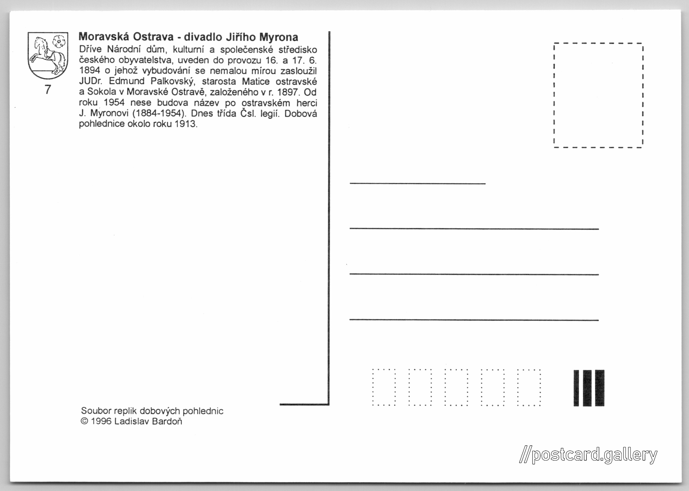 Dříve Národní dům, kulturní a společenské středisko českého obyvatelstva, uveden do provozu 16. a 17. 6. 1894 o jehož vybudování se nemalou mírou zasloužil JUDr. Edmund Palkovský, starosta Matice ostravské a Sokola v Moravské Ostravě, založeného v r. 1897. Od roku 1954 nese budova název po ostravském herci