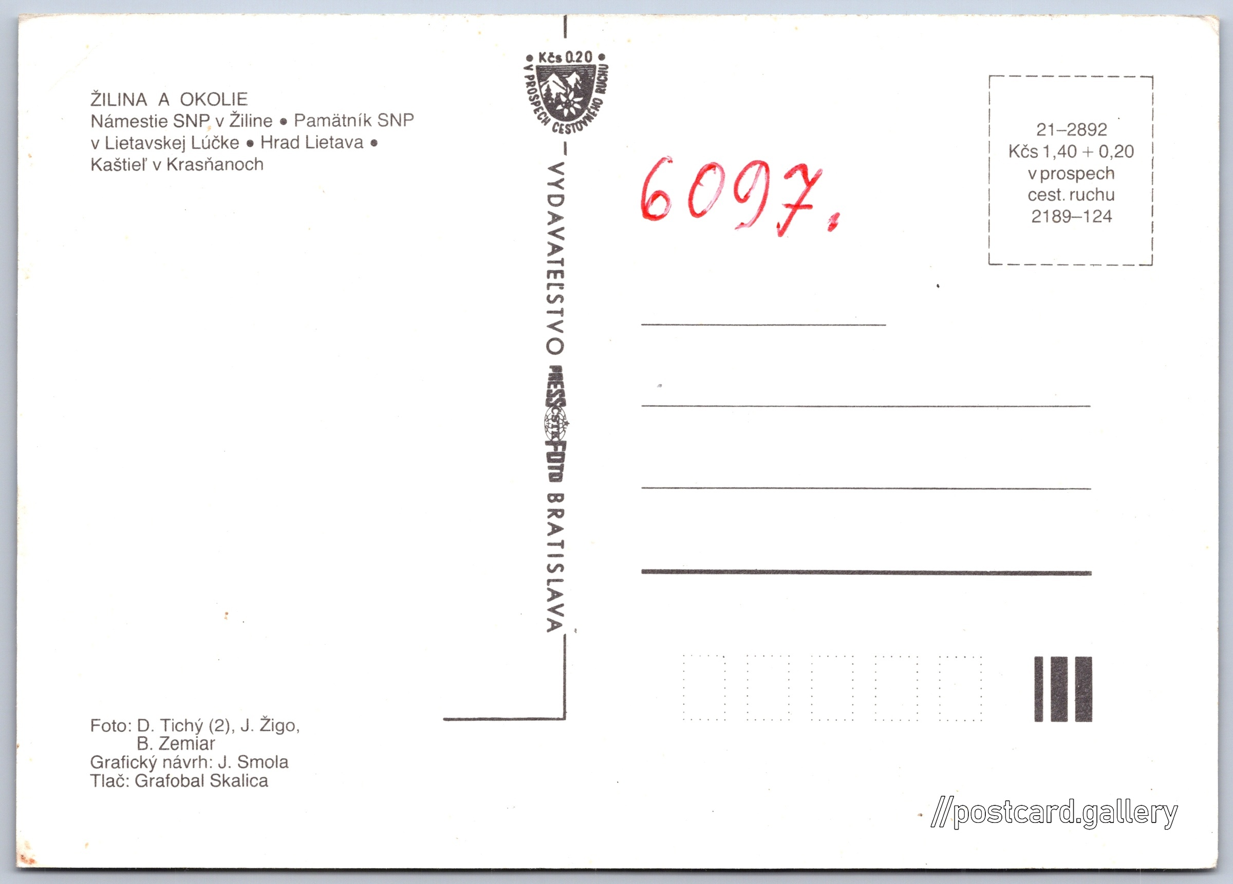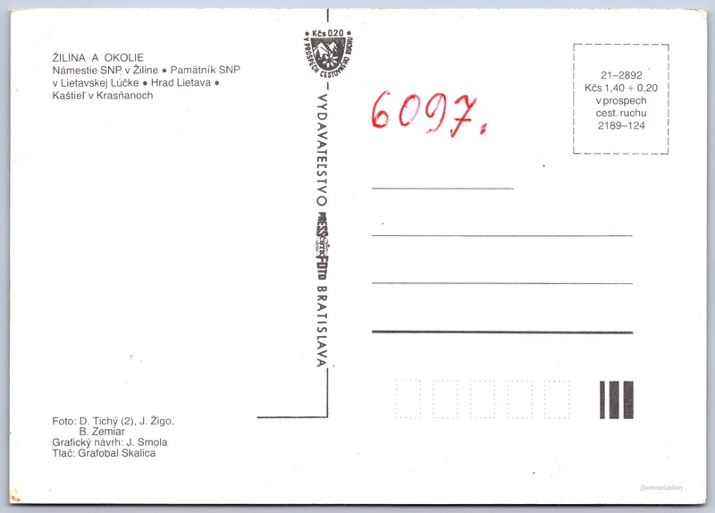 Cena pohlednice: 1,40 Kčs (CSK) (+0,20 Kčs přípl. na tur. ruch)