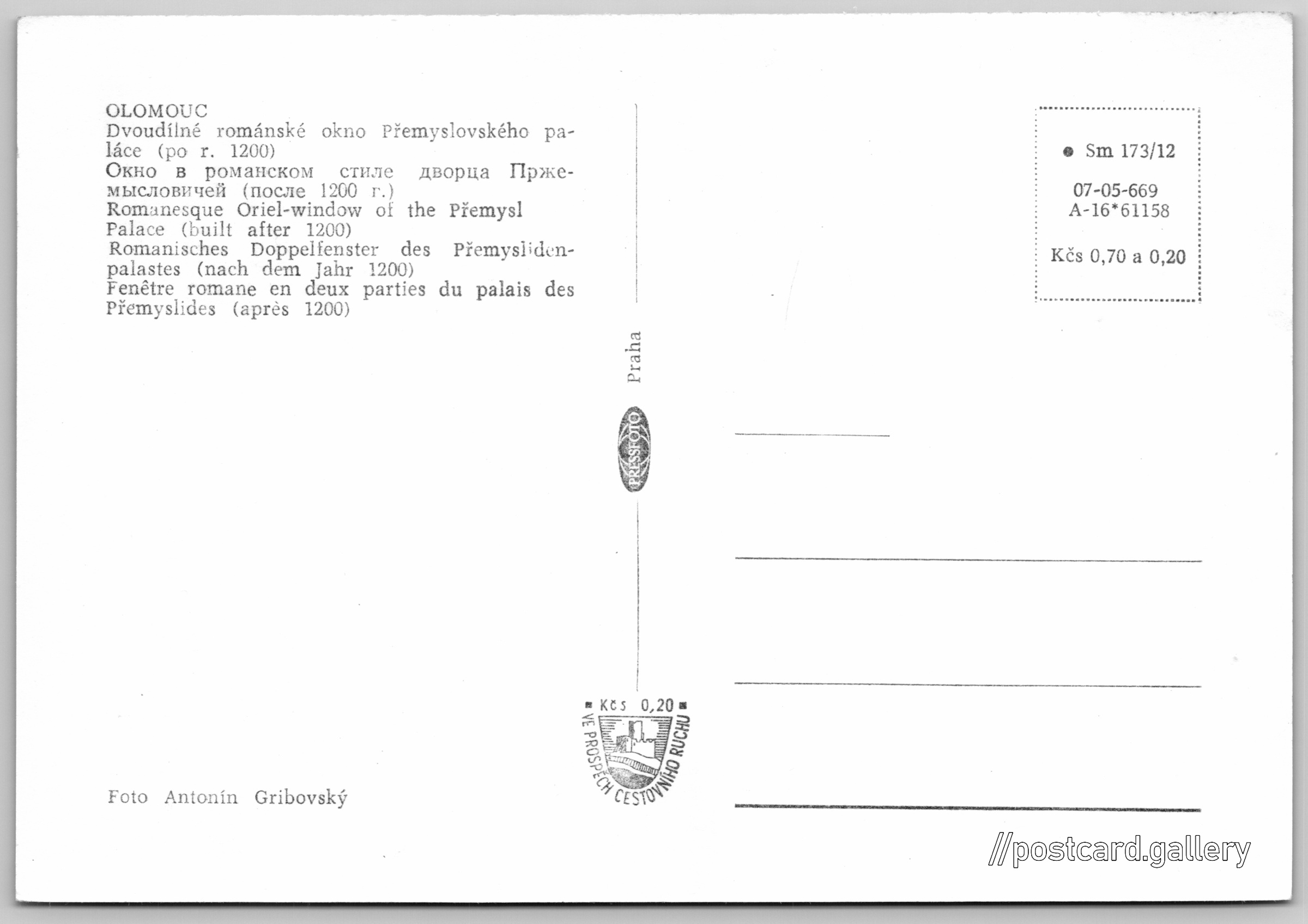 Jazyky tištěného textu na pohlednici: