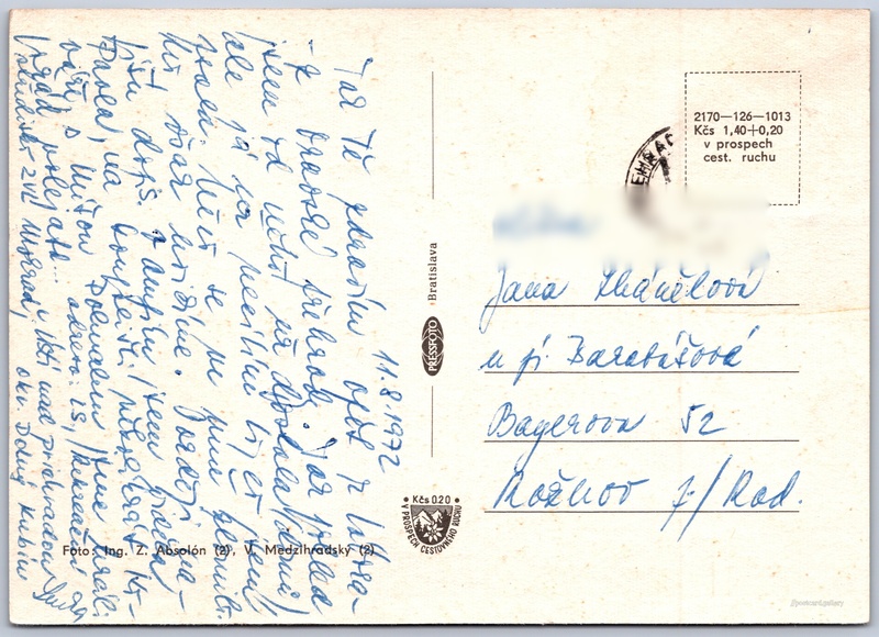 Orava Pokud chcete vidět pohlednice ve vyšším rozlišení nebo zobrazovat jejich zadní stranu, tak se prosím nejdříve přihlašte Přihlásit Zaregistrovat Orava Jazyk tištěného textu na pohlednici: slovenština Slanica ukázat na mapě Vydavatel: PressFoto Bratislava (Československo) Odhadované datum vydání pohlednice: 1969 - 1972 Pomozte nám zpřesnit rok vzniku pohlednice Velikost (š x v) a tvar pohlednice: 148 x 106 mm (5.83" x 4.17"), obdélník Osoby spjaté s touto pohlednicí: Zoltán Absolon(Autor fotografie) V. Medzihradský(Autor fotografie) Prošlá poštou:Datum napsání pohledu: 11.8.1972 Ceny: Cena pohlednice: 1,40 Kčs (CSK) (+0,20 Kčs přípl. na tur. ruch) Kódy na pohlednici: 2170-126-1013 DiskuseVložit příspěvek Přidat novou složku ... Spravovat složky ...