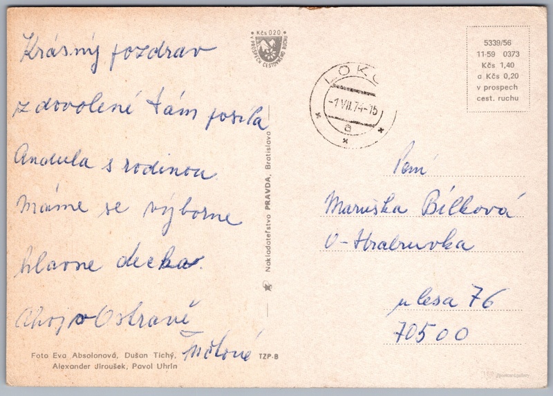 Cena pohlednice: 1,40 Kčs (CSK) (+0,20 Kčs přípl. na tur. ruch)