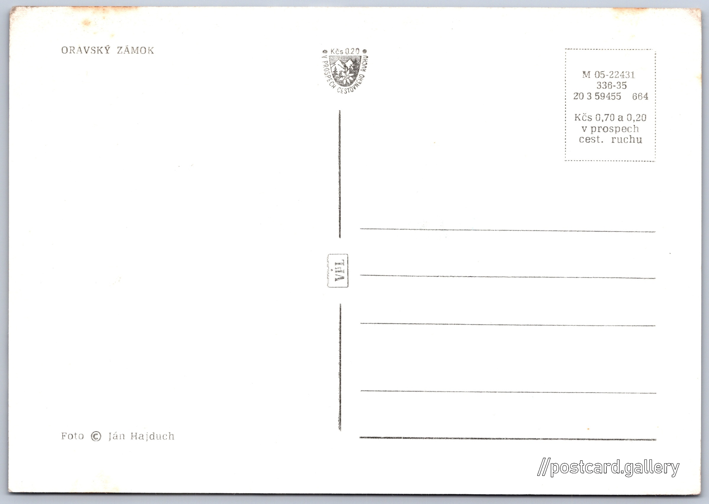 Cena pohlednice: 0,70 Kčs (CSK) (+0,20 Kčs přípl. na tur. ruch)
