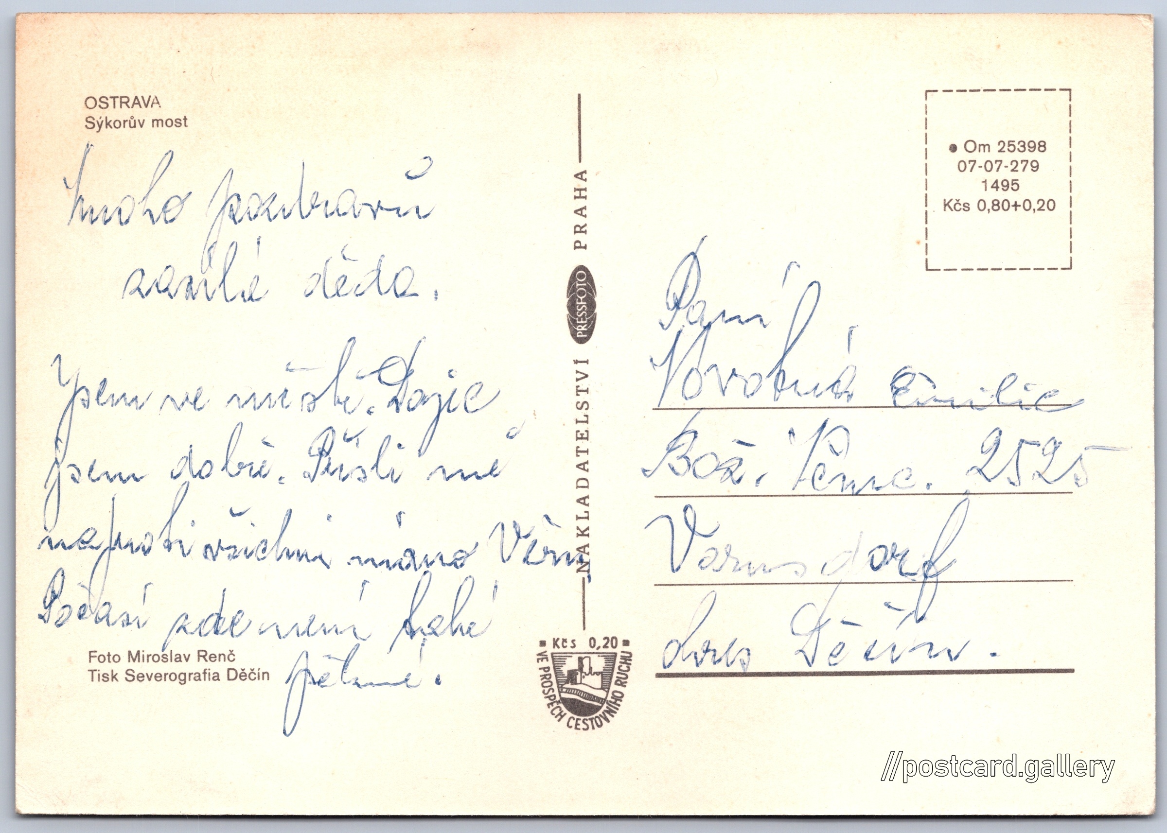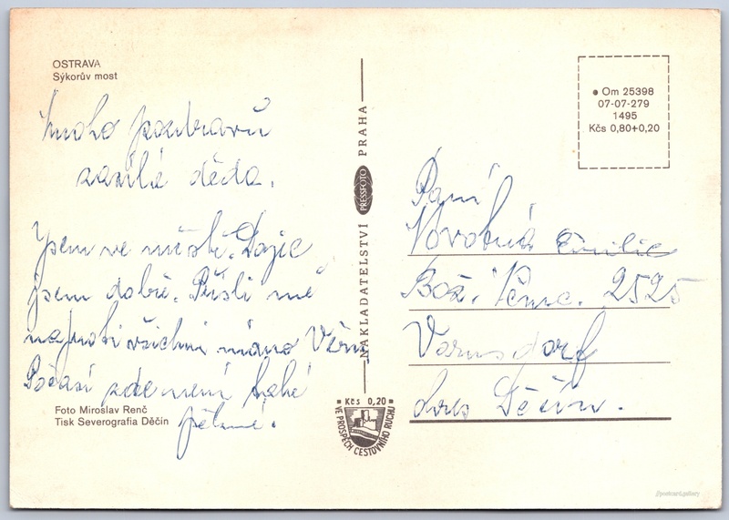 Cena pohlednice: 0,80 Kčs (CSK) (+0,20 Kčs přípl. na tur. ruch)