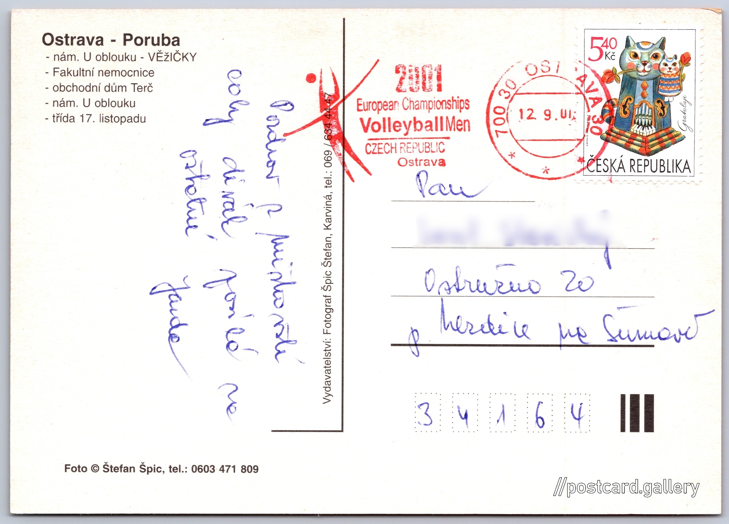 Ostrava - Poruba Pokud chcete vidět pohlednice ve vyšším rozlišení nebo zobrazovat jejich zadní stranu, tak se prosím nejdříve přihlašte Přihlásit Zaregistrovat Ostrava - Poruba Ostrava - Poruba- nám. U oblouku - VĚŽIČKY- Fakultní nemocnice- obchodní dům Terč- nám. U oblouku- třída 17. listopadu Jazyk tištěného textu na pohlednici: čeština Porubská, Ostrava, Ostrava-město ukázat na mapě Vydavatel: Štefan Špic (Česko) Odhadované datum vydání pohlednice: 1998 - 2001 Pomozte nám zpřesnit rok vzniku pohlednice Velikost (š x v) a tvar pohlednice: 149 x 105 mm (5.87" x 4.13"), obdélník Osoby spjaté s touto pohlednicí: Štefan Špic(Autor fotografie) Prošlá poštou:Datum na razítku: 12.9.2001 Ceny: Vyplacené známky: 5,40 Kč (CZK) DiskuseVložit příspěvek Přidat novou složku ... Spravovat složky ...