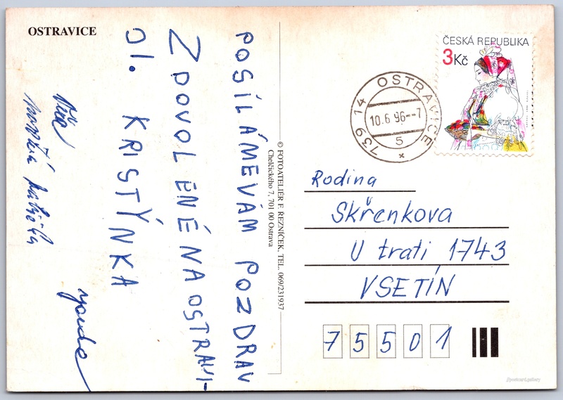 Ostravice Pokud chcete vidět pohlednice ve vyšším rozlišení nebo zobrazovat jejich zadní stranu, tak se prosím nejdříve přihlašte Přihlásit Zaregistrovat OSTRAVICE Jazyk tištěného textu na pohlednici: čeština Ostravice, Obec, Česko ukázat na mapě V blízkém okolí místa zobrazeného na pohlednici lze najít 12 jiných pohlednic. Zobrazit blízké pohlednice Vydavatel: Malý nakladatel (Česko) Odhadované datum vydání pohlednice: 1993 - 1996 Pomozte nám zpřesnit rok vzniku pohlednice Velikost (š x v) a tvar pohlednice: 148 x 103 mm (5.83" x 4.06"), obdélník Prošlá poštou:Datum na razítku: 10.6.1996 Ceny: Vyplacené známky: 3,00 Kč (CZK) DiskuseVložit příspěvek Přidat novou složku ... Spravovat složky ...