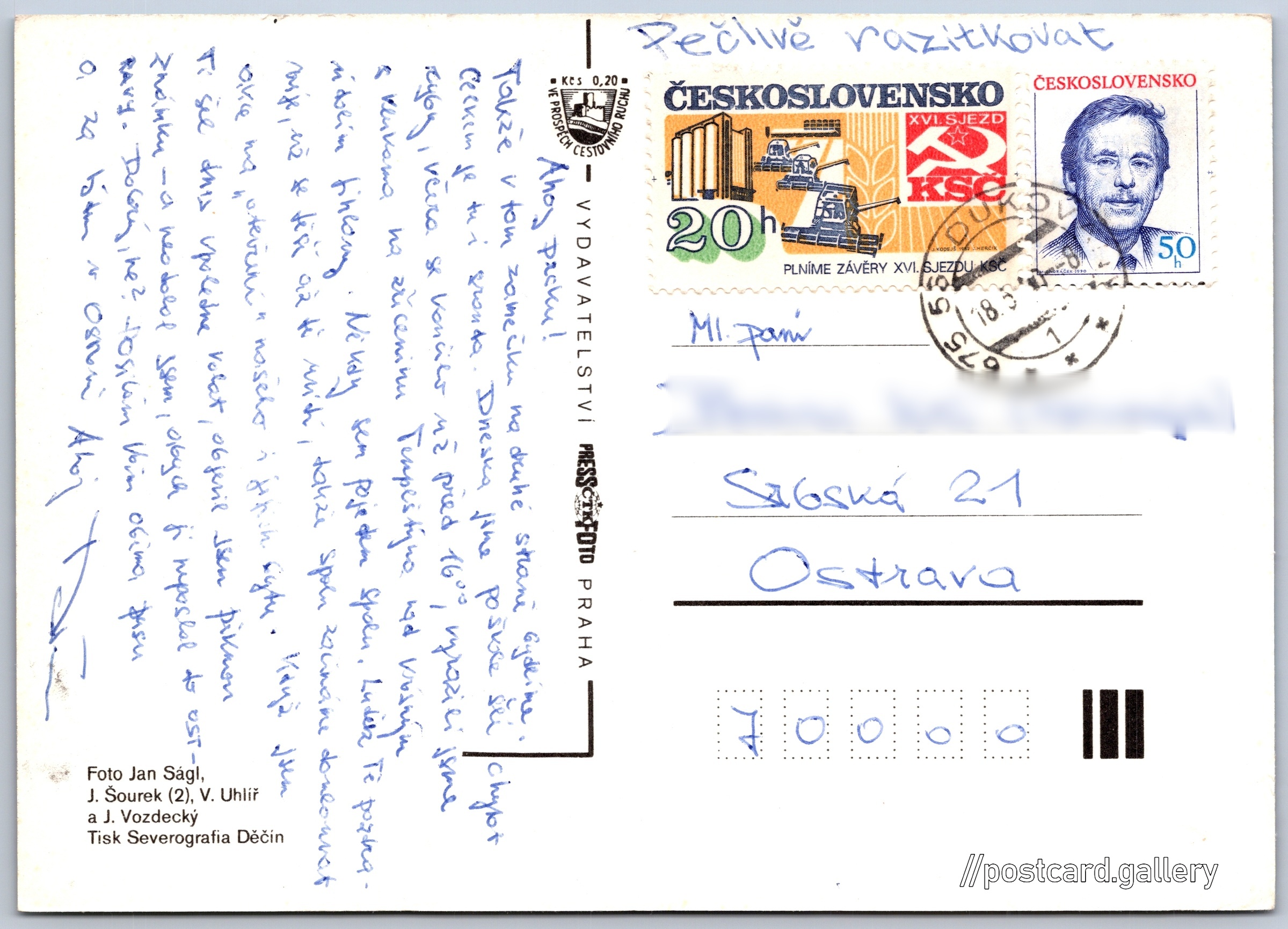 Památky Třebíčska Pokud chcete vidět pohlednice ve vyšším rozlišení nebo zobrazovat jejich zadní stranu, tak se prosím nejdříve přihlašte Přihlásit Zaregistrovat Památky TřebíčskaJAROMĚŘICE nad ROKYTNOU, KRALICE nad OSLAVOU, NÁMĚŠŤ nad OSLAVOU, TŘEBÍČ, DUKOVANY Jazyk tištěného textu na pohlednici: čeština Jaroměřice nad Rokytnou, Třebíč ukázat na mapě V blízkém okolí místa zobrazeného na pohlednici lze najít 13 jiných pohlednic. Zobrazit blízké pohlednice Vydavatel: PressFoto Praha (Československo) Odhadované datum vydání pohlednice: 1987 - 1990 Pomozte nám zpřesnit rok vzniku pohlednice Velikost (š x v) a tvar pohlednice: 148 x 105 mm (5.83" x 4.13"), obdélník Osoby spjaté s touto pohlednicí: Jan Vozdecký(Autor fotografie) Jan Ságl(Autor fotografie) Jiří Šourek(Autor fotografie) Vladimír Uhlíř(Autor fotografie) Prošlá poštou:Datum na razítku: 18.5.1990 Ceny: Příplatek na tur. ruch: 0,20 Kčs (CSK))Vyplacené známky: 0,70 Kčs (CSK) DiskuseVložit příspěvek Přidat novou složku ... Spravovat složky ...