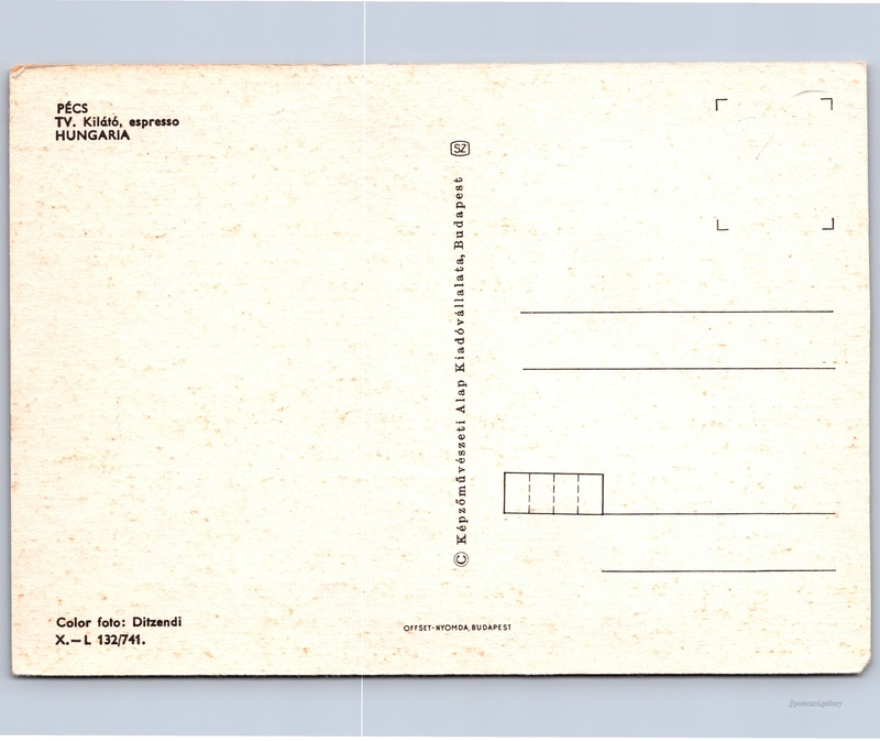 Pécs, televizní vysílač Pokud chcete vidět pohlednice ve vyšším rozlišení nebo zobrazovat jejich zadní stranu, tak se prosím nejdříve přihlašte Přihlásit Zaregistrovat PÉCSTV. Kilátó, espressoHUNGARIA Jazyk tištěného textu na pohlednici: maďarština János-kilátó, Rozhledna, Dunántúl, Maďarsko ukázat na mapě Vydavatel: Képzőművészeti Alap Kiadóvállalata (Maďarsko) Datum vydání není známo Pomozte nám odhadnout datum vzniku pohlednice Velikost (š x v) a tvar pohlednice: 148 x 105 mm (5.83" x 4.13"), obdélník Osoby spjaté s touto pohlednicí: Ditzendi(Autor fotografie) Čistá pohlednice (neprošlá poštou) Kódy na pohlednici: X.-L 132/741 DiskuseVložit příspěvek Přidat novou složku ... Spravovat složky ...