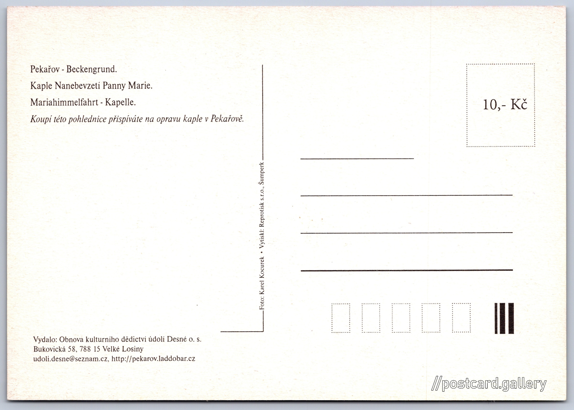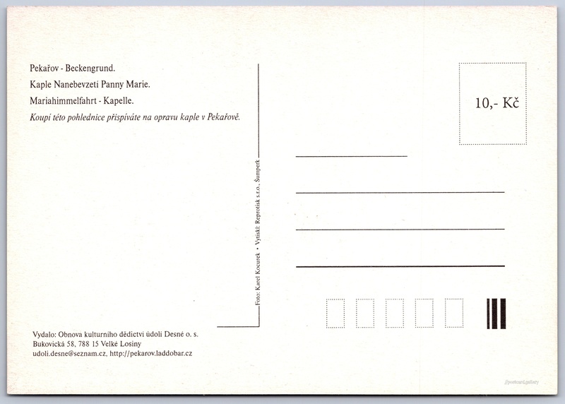 Koupí této pohlednice přispíváte na opravu kaple v Pekařově.