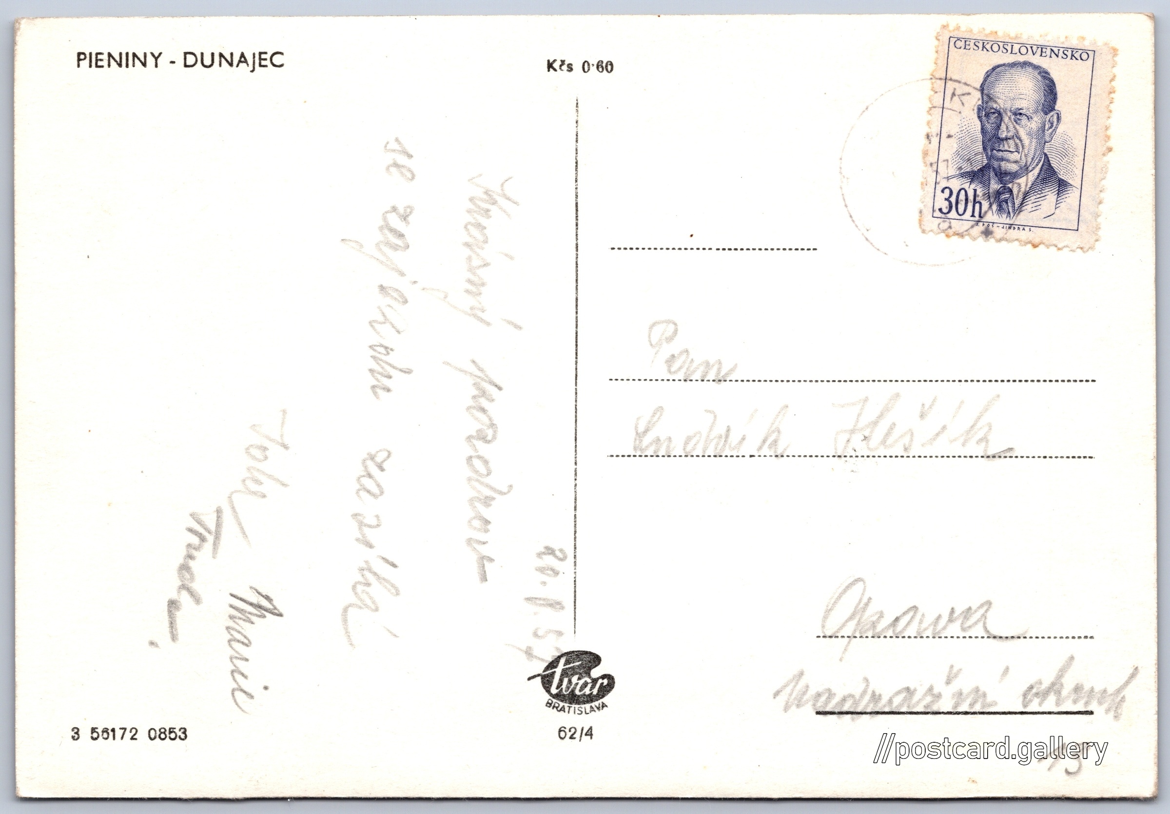 Cena pohlednice: 0,60 Kčs (CSK)