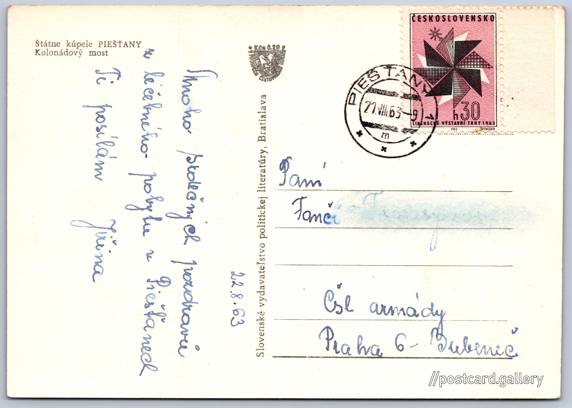Datum napsání pohledu: 22.8.1963