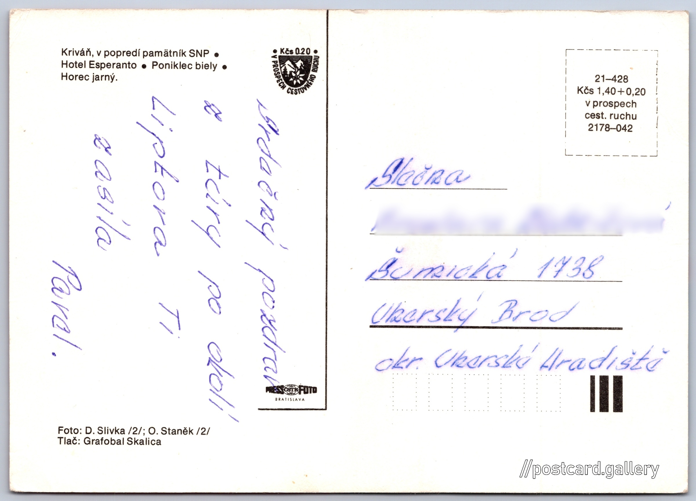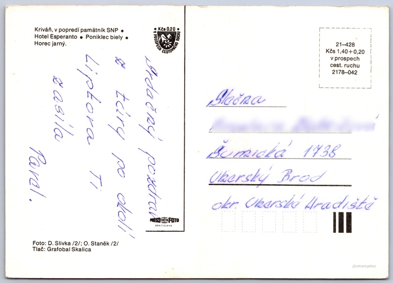 Cena pohlednice: 1,40 Kčs (CSK) (+0,20 Kčs přípl. na tur. ruch)