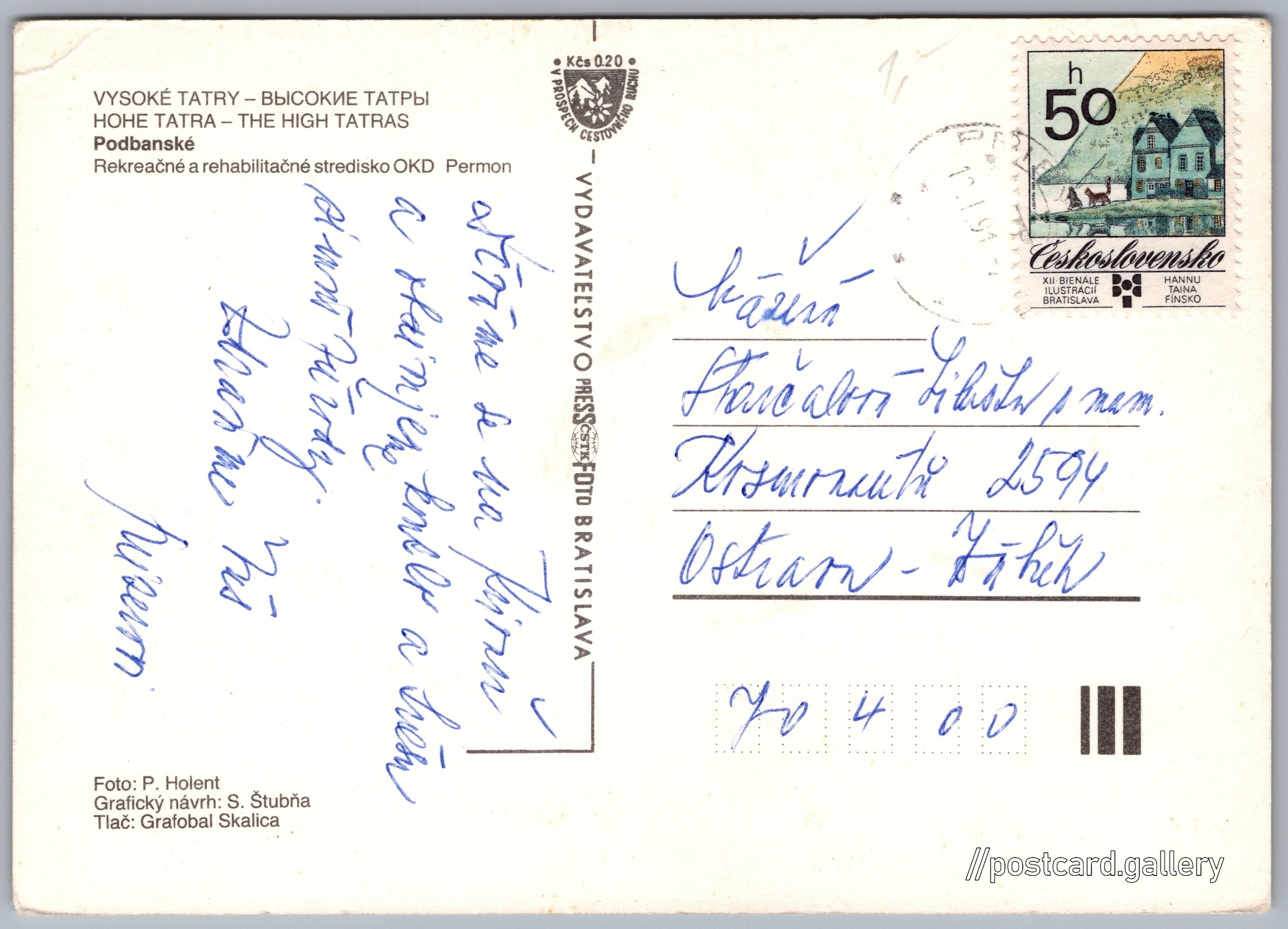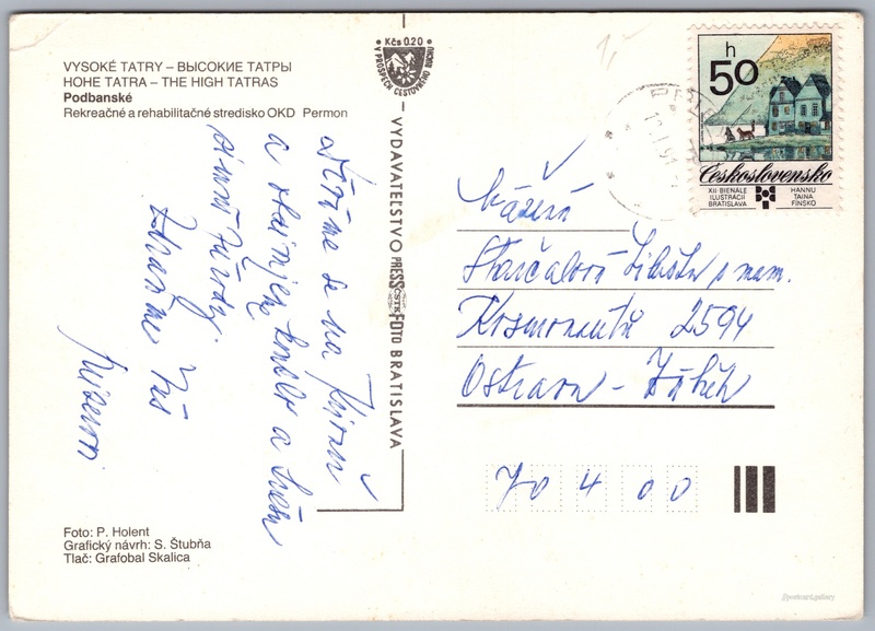 Jazyk tištěného textu na pohlednici: