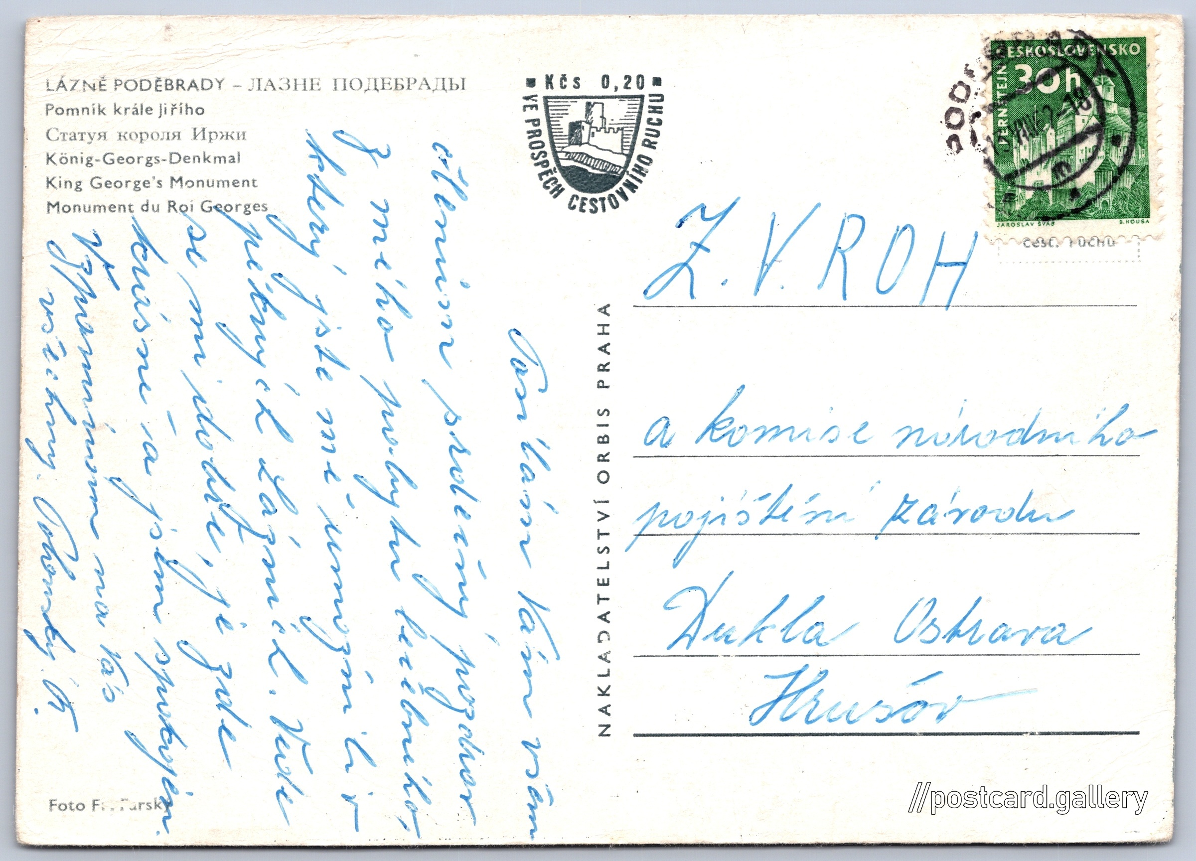 Jazyky tištěného textu na pohlednici: