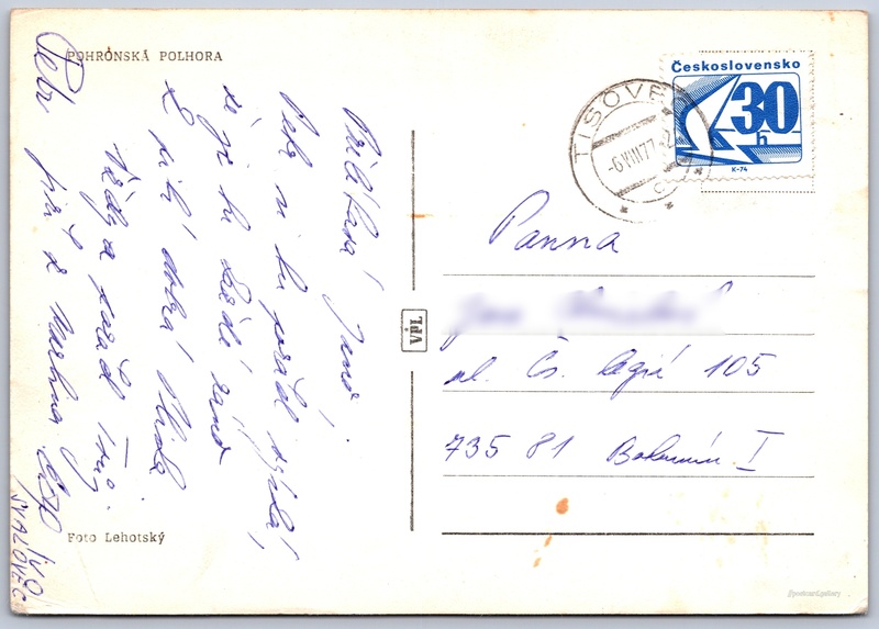 Pohronská Polhora Pokud chcete vidět pohlednice ve vyšším rozlišení nebo zobrazovat jejich zadní stranu, tak se prosím nejdříve přihlašte Přihlásit Zaregistrovat POHRONSKA POLHORA Jazyk tištěného textu na pohlednici: slovenština Pohronská Polhora, Vesnice, Slovensko ukázat na mapě Vydavatel: VPL (Československo) Odhadované datum vydání pohlednice: 1970 - 1977 Pomozte nám zpřesnit rok vzniku pohlednice Velikost (š x v) a tvar pohlednice: 146 x 102 mm (5.75" x 4.02"), obdélník Osoby spjaté s touto pohlednicí: Ján Lehotský(Autor fotografie) Prošlá poštou:Datum na razítku: 6.8.1977 Ceny: Vyplacené známky: 0,30 Kčs (CSK) DiskuseVložit příspěvek Přidat novou složku ... Spravovat složky ...