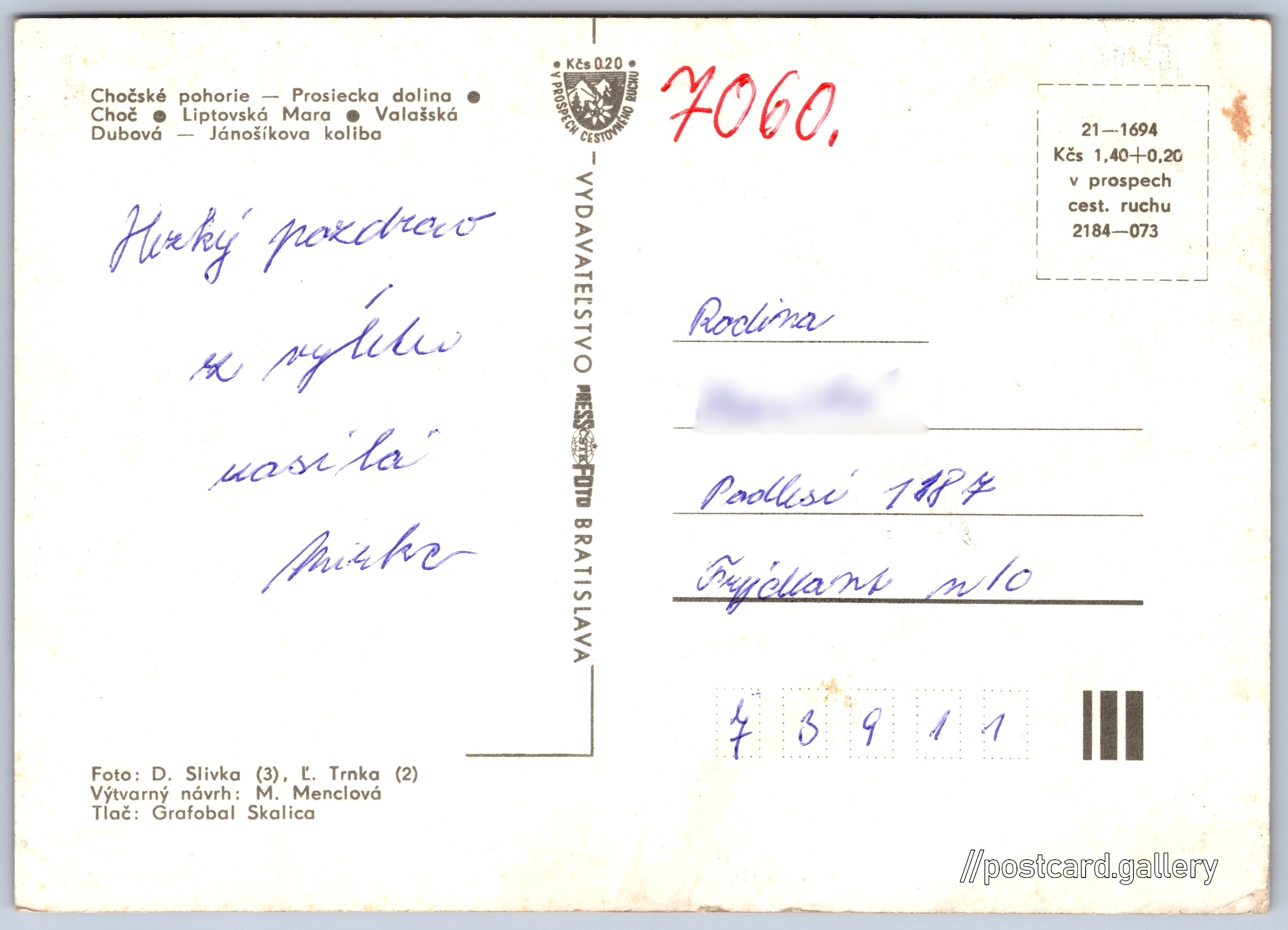 Pozdrav z Liptova Pokud chcete vidět pohlednice ve vyšším rozlišení nebo zobrazovat jejich zadní stranu, tak se prosím nejdříve přihlašte Přihlásit Zaregistrovat Pozdrav z Liptova - Chočské pohorie - Prosiecka dolina- Choč- Liptovská Mara- Valašská Dubová - Jánošíkova koliba Jazyk tištěného textu na pohlednici: slovenština Chočské vrchy, Pohoří, Žilinský kraj, oblast RŠÚJ Stredné Slovensko, Slovensko ukázat na mapě Vydavatel: PressFoto Bratislava (Československo) Rok vydání pohlednice: 1984 Velikost (š x v) a tvar pohlednice: 147 x 105 mm (5.79" x 4.13"), obdélník Osoby spjaté s touto pohlednicí: D. Slivka(Autor fotografie) M. Menclová(Design pohlednice) Ľ. Trnka(Autor fotografie) Prošlá poštou Ceny: Cena pohlednice: 1,40 Kčs (CSK) (+0,20 Kčs přípl. na tur. ruch) Kódy na pohlednici: 21-1694 2184-073 DiskuseVložit příspěvek Přidat novou složku ... Spravovat složky ...