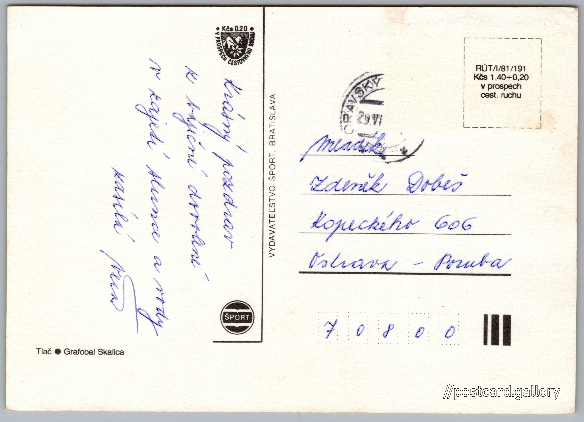 Cena pohlednice: 1,40 Kčs (CSK) (+0,20 Kčs přípl. na tur. ruch)