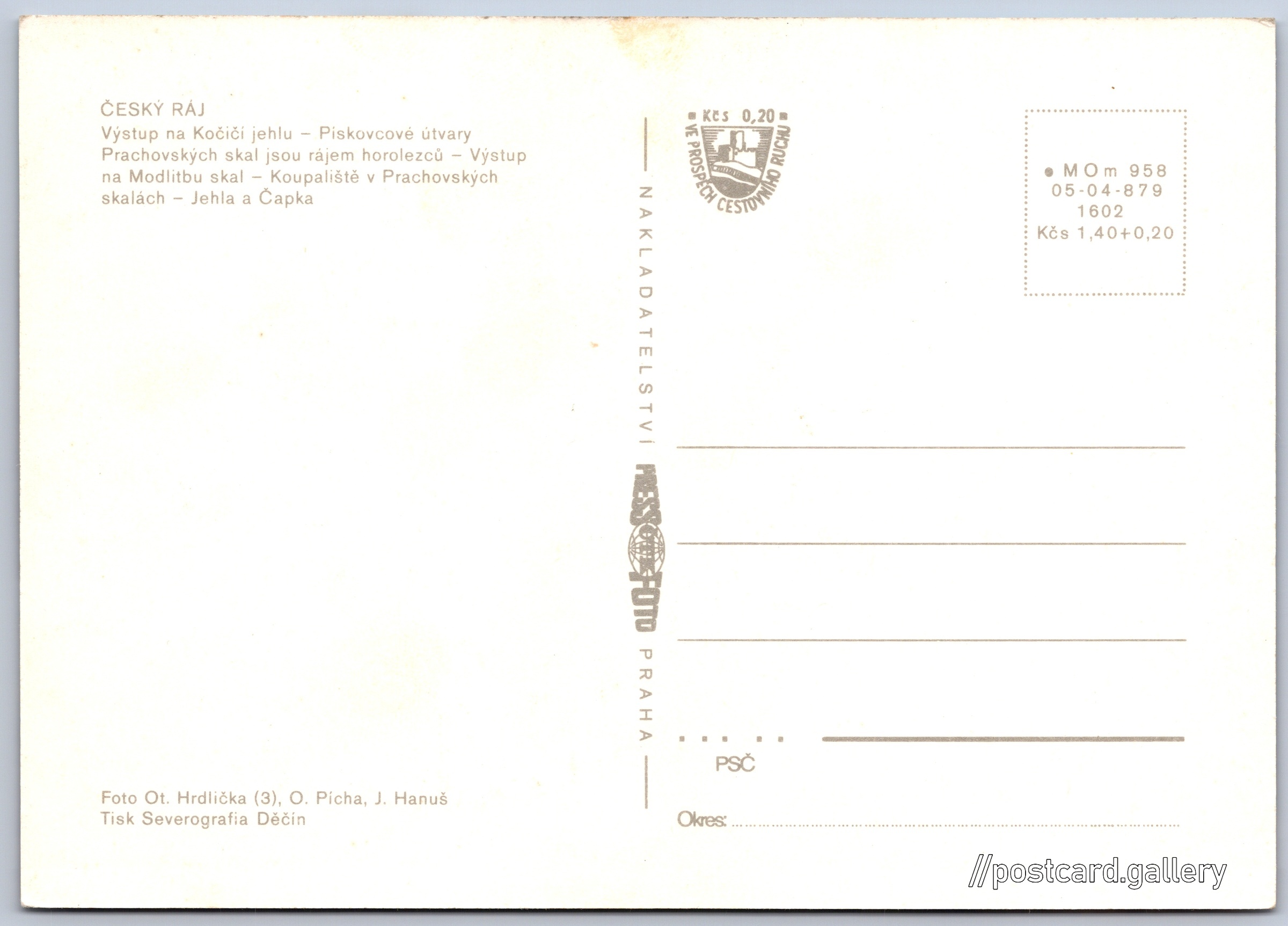 Cena pohlednice: 1,40 Kčs (CSK) (+0,20 Kčs přípl. na tur. ruch)
