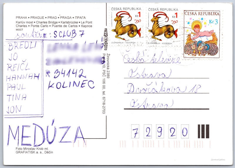 Praha, Karlův most 2/159 Pokud chcete vidět pohlednice ve vyšším rozlišení nebo zobrazovat jejich zadní stranu, tak se prosím nejdříve přihlašte Přihlásit Zaregistrovat PRAHA - PRAGUE - PRAG - PRAGA - ПРАГА- Karlův most- Charles Bridge- Karlsbrücke- Le Pont Charles- Ponte Carlo- Puente de Carlos- Карлов мост Jazyky tištěného textu na pohlednici: čeština, angličtina, němčina, italština, ruština, ruština Karlův most, Most, Karlův most, Praha, Česko ukázat na mapě V blízkém okolí místa zobrazeného na pohlednici lze najít 159 jiných pohlednic. Zobrazit blízké pohlednice Vydavatel: PressFoto Praha (Československo) Odhadované datum vydání pohlednice: 1998 - 2000 Pomozte nám zpřesnit rok vzniku pohlednice Velikost (š x v) a tvar pohlednice: 147 x 105 mm (5.79" x 4.13"), obdélník Osoby spjaté s touto pohlednicí: Miroslav Krob ml.(Autor fotografie) Prošlá poštou Ceny: Vyplacené známky: 5,00 Kč (CZK) DiskuseVložit příspěvek Přidat novou složku ... Spravovat složky ...