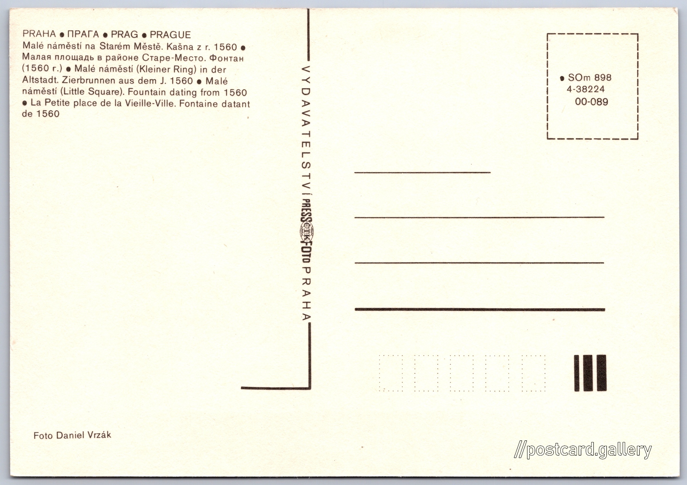 Jazyky tištěného textu na pohlednici: