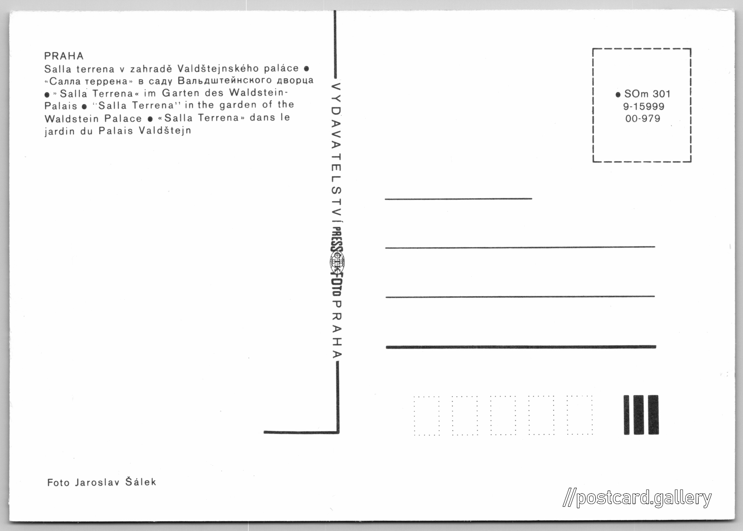 Jazyky tištěného textu na pohlednici: