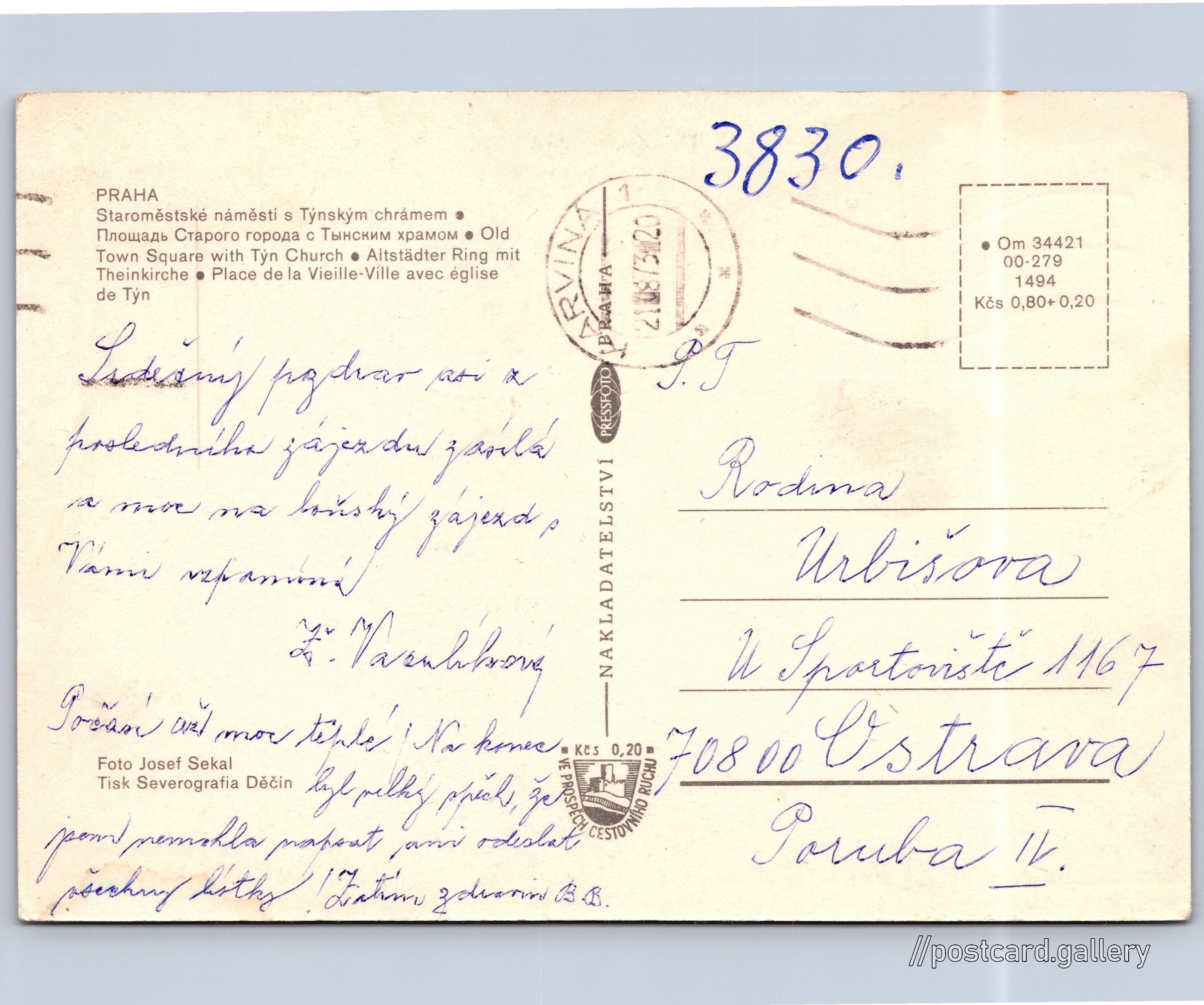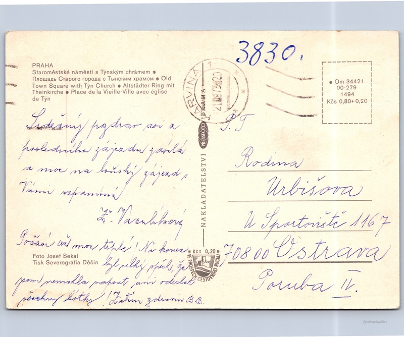 Cena pohlednice: 0,80 Kčs (CSK) (+0,20 Kčs přípl. na tur. ruch)