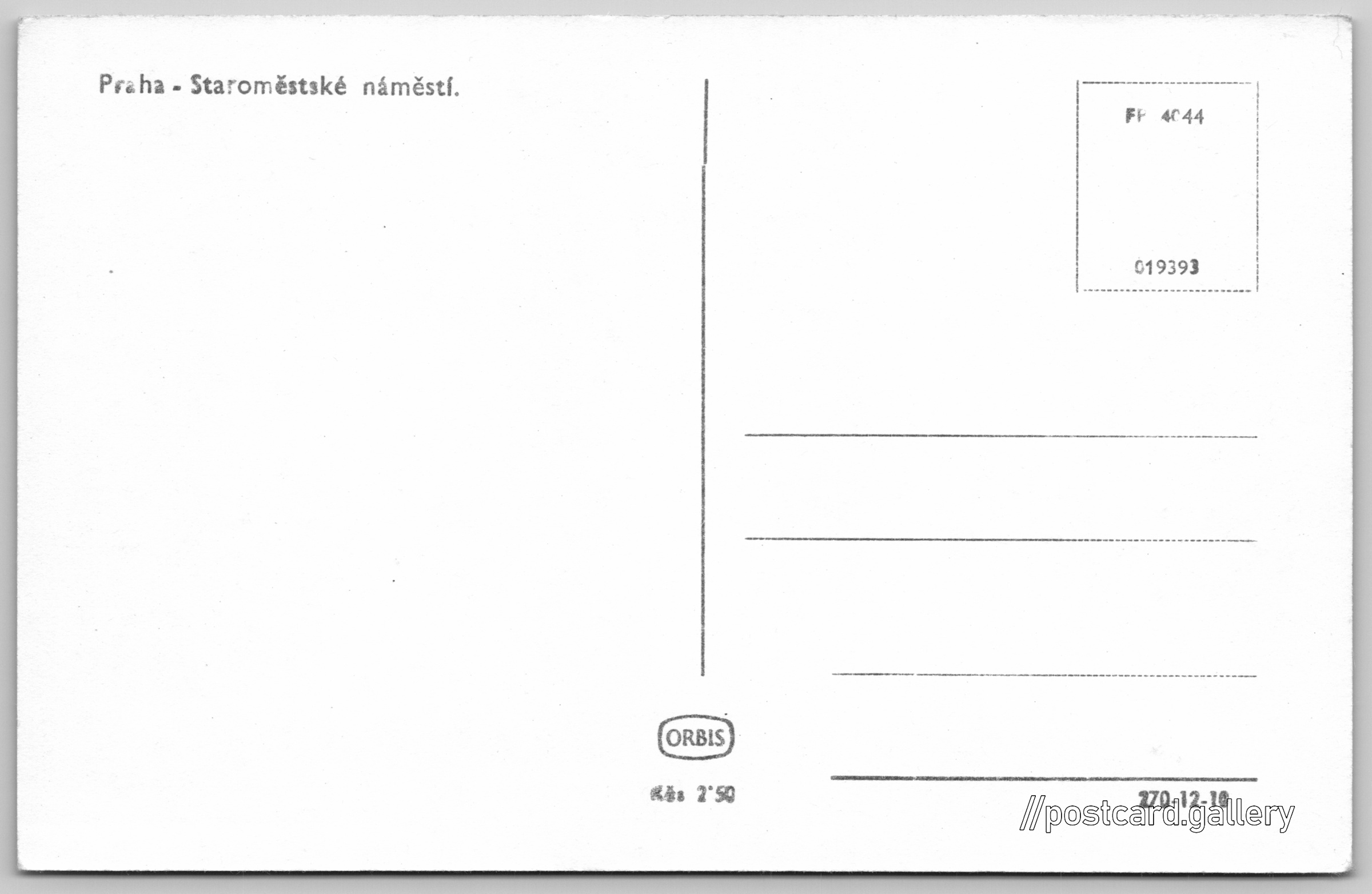 Praha, Staroměstské náměstí 5/159 Pokud chcete vidět pohlednice ve vyšším rozlišení nebo zobrazovat jejich zadní stranu, tak se prosím nejdříve přihlašte Přihlásit Zaregistrovat Praha - Staroměstské náměstí. Jazyk tištěného textu na pohlednici: čeština Praha 1, Praha, Hlavní město Praha ukázat na mapě V blízkém okolí místa zobrazeného na pohlednici lze najít 159 jiných pohlednic. Zobrazit blízké pohlednice Vydavatel: Nakladatelství Orbis (Československo) Datum vydání není známo Pomozte nám odhadnout datum vzniku pohlednice Velikost (š x v) a tvar pohlednice: 140 x 90 mm (5.51" x 3.54"), obdélník Čistá pohlednice (neprošlá poštou) Ceny: Cena pohlednice: 2,50 Kčs (CSK) Kódy na pohlednici: FP 4044 019393 270-12-10 DiskuseVložit příspěvek Přidat novou složku ... Spravovat složky ...