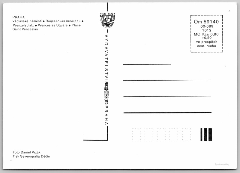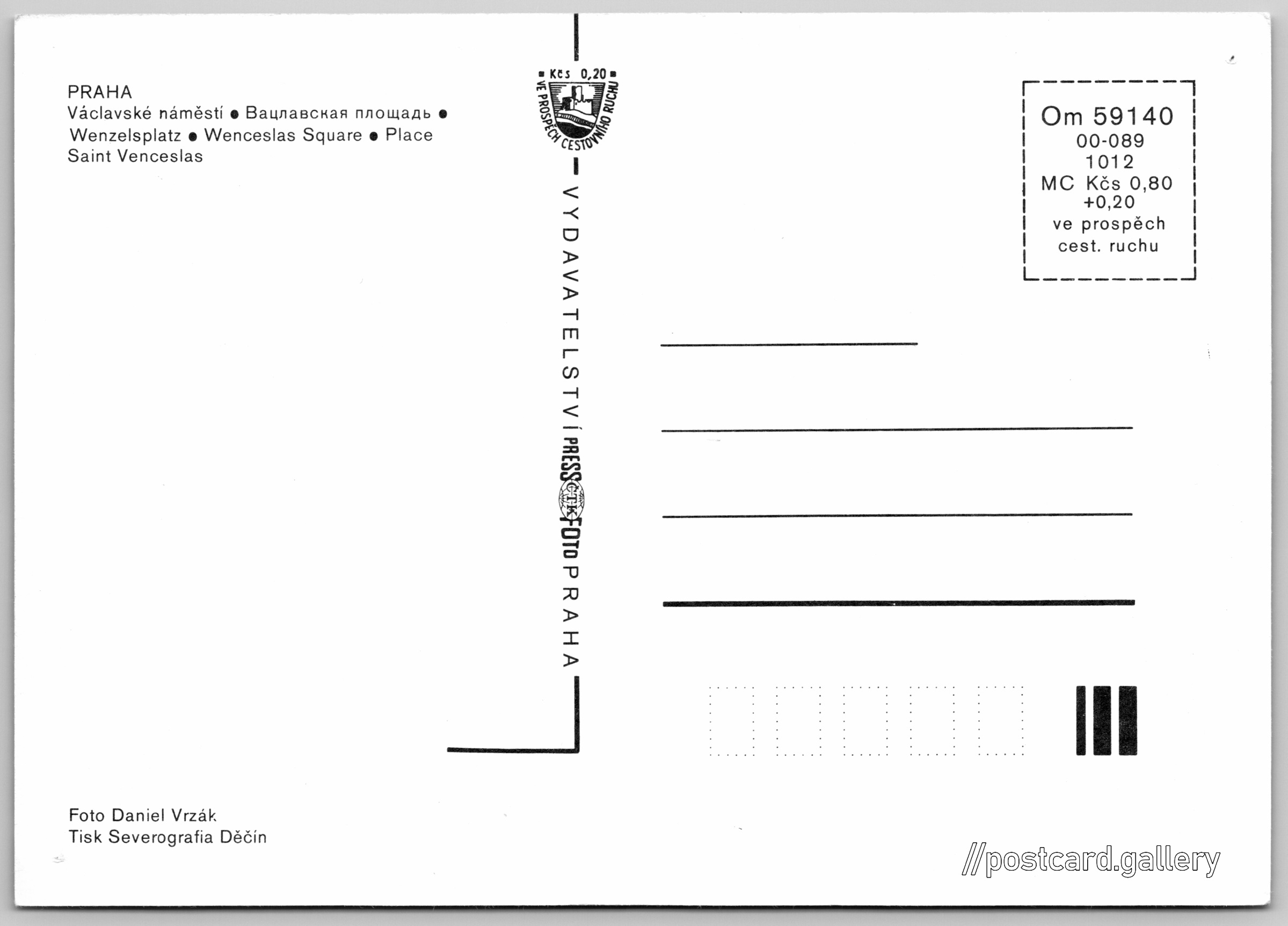 Cena pohlednice: 0,80 Kčs (CSK) (+0,20 Kčs přípl. na tur. ruch)