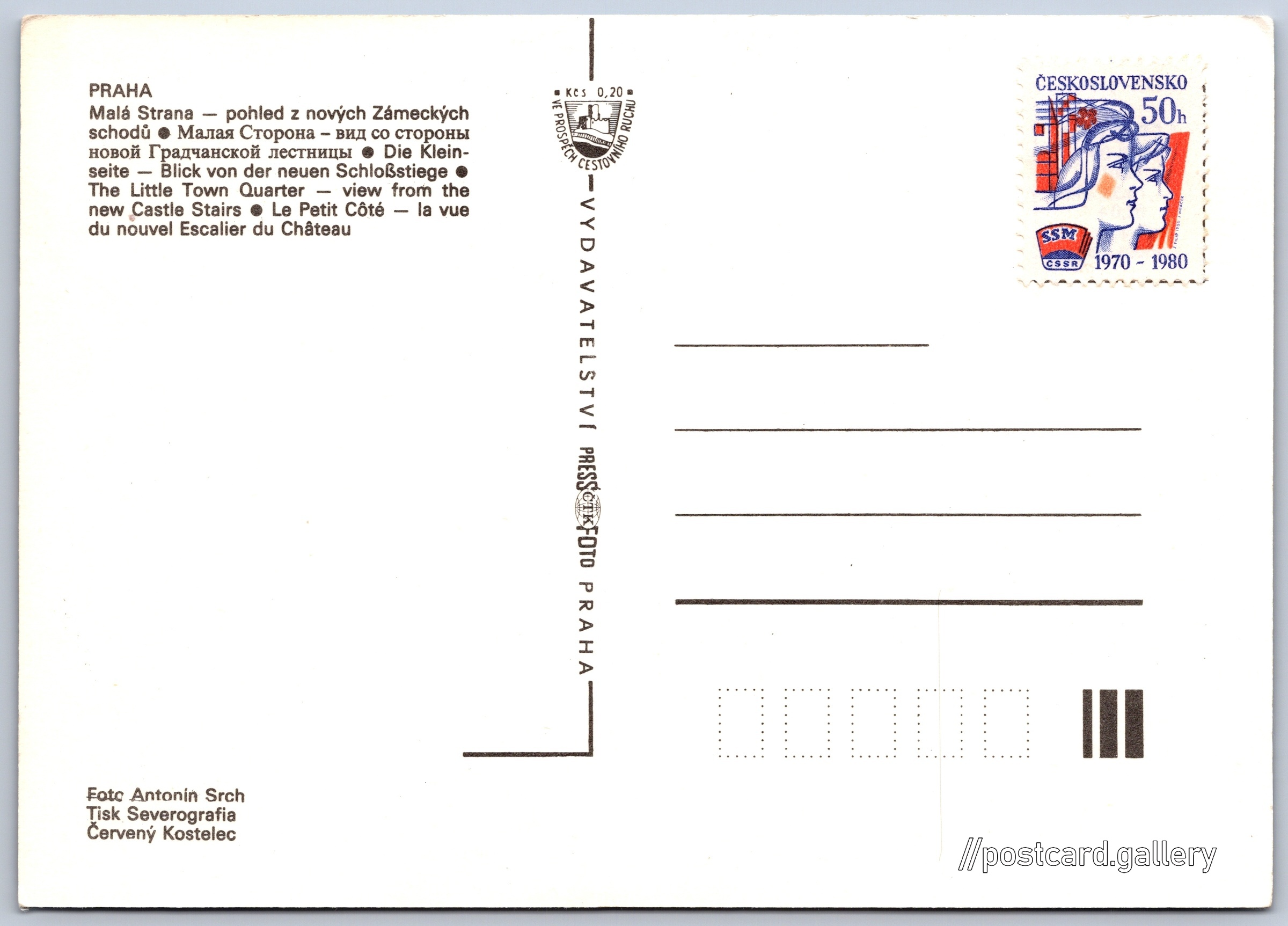 Jazyk tištěného textu na pohlednici: