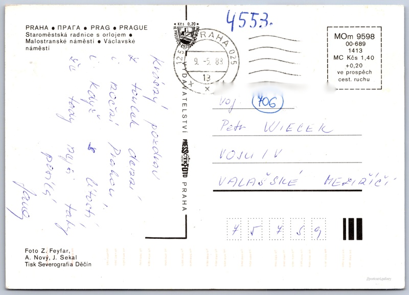 Cena pohlednice: 1,40 Kčs (CSK) (+0,20 Kčs přípl. na tur. ruch)