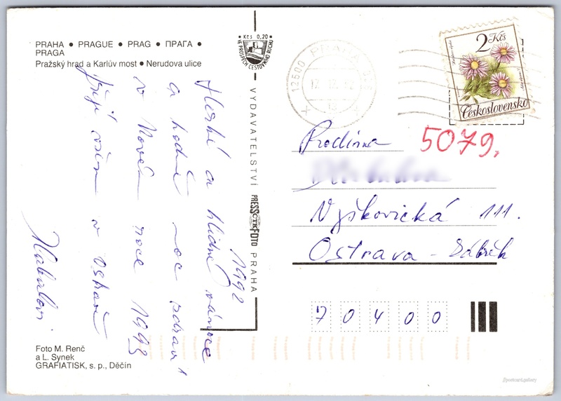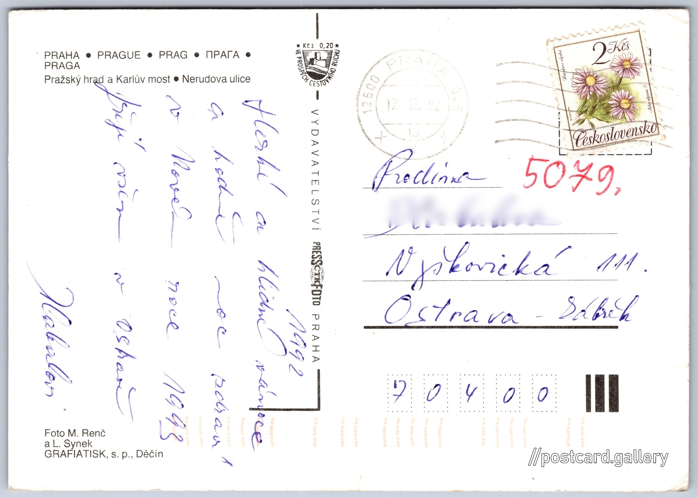 Praha Pokud chcete vidět pohlednice ve vyšším rozlišení nebo zobrazovat jejich zadní stranu, tak se prosím nejdříve přihlašte Přihlásit Zaregistrovat Praha PRAHA - PRAGUE - PRAG - ΠΡΑΓΑ - PRAGA- Pražský hrad a Karlův most- Nerudova ulice Jazyky tištěného textu na pohlednici: čeština, angličtina, němčina, ruština, italština, italština Na Kampě 507/8a, Praha, 118 00, Hlavní město Praha ukázat na mapě Vydavatel: PressFoto Praha (Československo) Odhadované datum vydání pohlednice: 1987 - 1989 Pomozte nám zpřesnit rok vzniku pohlednice Velikost (š x v) a tvar pohlednice: 146 x 105 mm (5.75" x 4.13"), obdélník Osoby spjaté s touto pohlednicí: Miroslav Renč(Autor fotografie) Lubomír Synek(Autor fotografie) Prošlá poštou:Datum na razítku: 17.12.1992 Ceny: Příplatek na tur. ruch: 0,20 Kčs (CSK))Vyplacené známky: 2,00 Kčs (CSK) DiskuseVložit příspěvek Přidat novou složku ... Spravovat složky ...