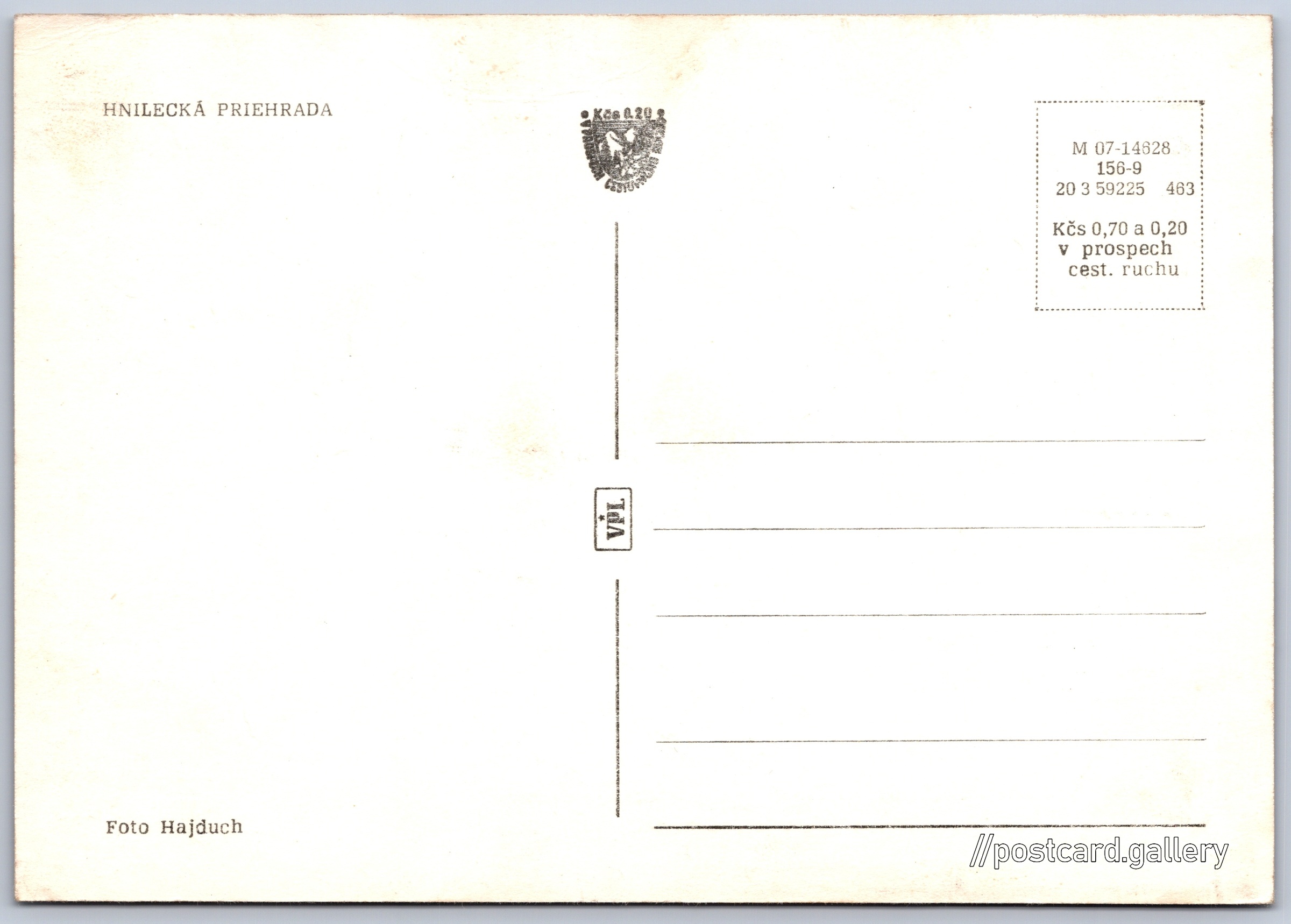 Cena pohlednice: 0,70 Kčs (CSK) (+0,20 Kčs přípl. na tur. ruch)