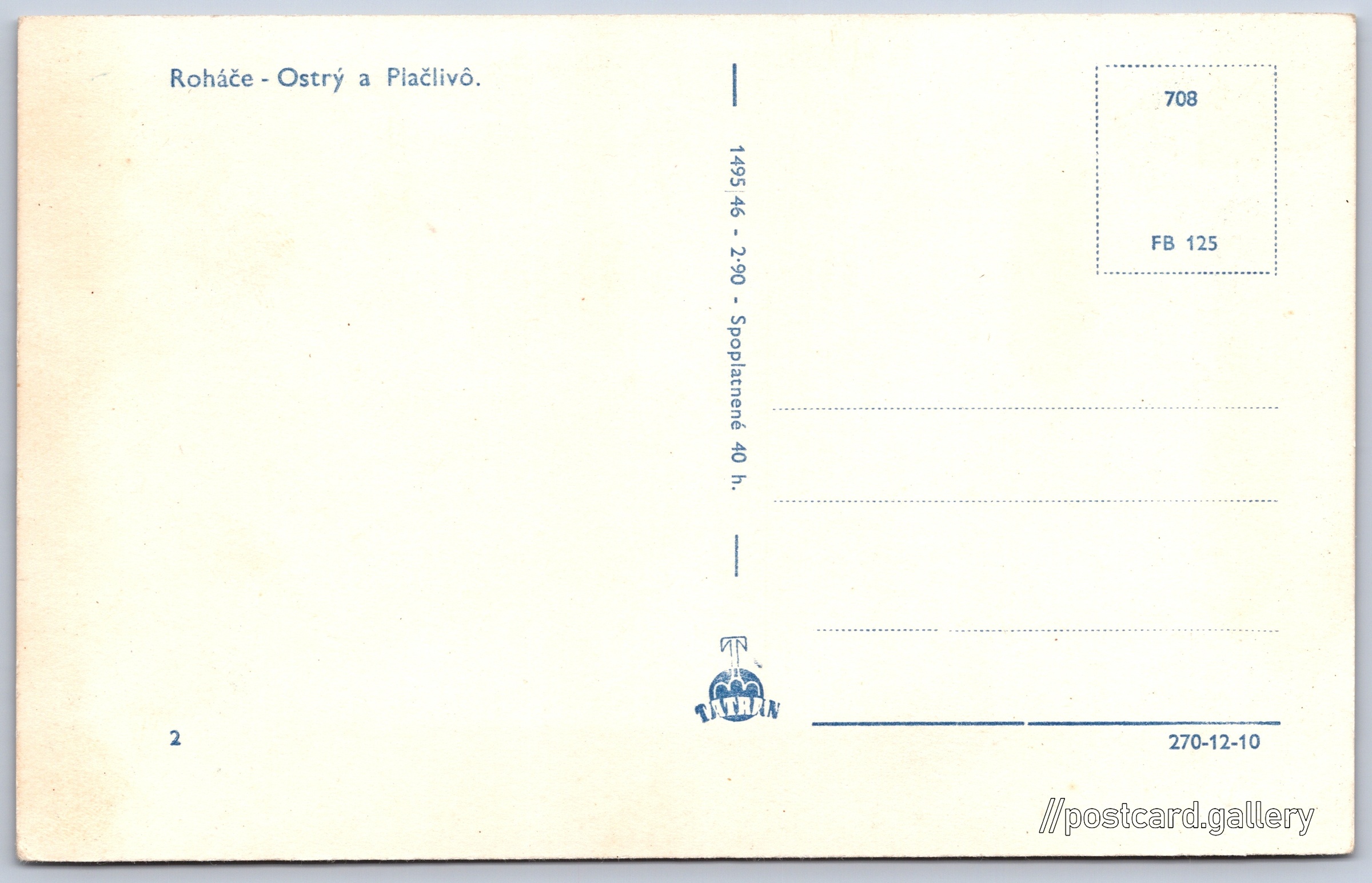 Roháče, Ostrý a Plačlivé Pokud chcete vidět pohlednice ve vyšším rozlišení nebo zobrazovat jejich zadní stranu, tak se prosím nejdříve přihlašte Přihlásit Zaregistrovat Roháče - Ostrý a Plačlivô. Jazyk tištěného textu na pohlednici: slovenština Ostrý Roháč (2087 m), Hora, výškový bod, Zuberec, Slovensko ukázat na mapě V blízkém okolí místa zobrazeného na pohlednici lze najít 13 jiných pohlednic. Zobrazit blízké pohlednice Vydavatel: Tatran (Československo) Datum vydání není známo Pomozte nám odhadnout datum vzniku pohlednice Velikost (š x v) a tvar pohlednice: 141 x 89 mm (5.55" x 3.50"), obdélník Čistá pohlednice (neprošlá poštou) Ceny: Cena pohlednice: 2,90 Kčs (CSK) (+0,40 Kčs přípl. na tur. ruch) Kódy na pohlednici: 708 FB 125 1495|46 2 DiskuseVložit příspěvek Přidat novou složku ... Spravovat složky ...