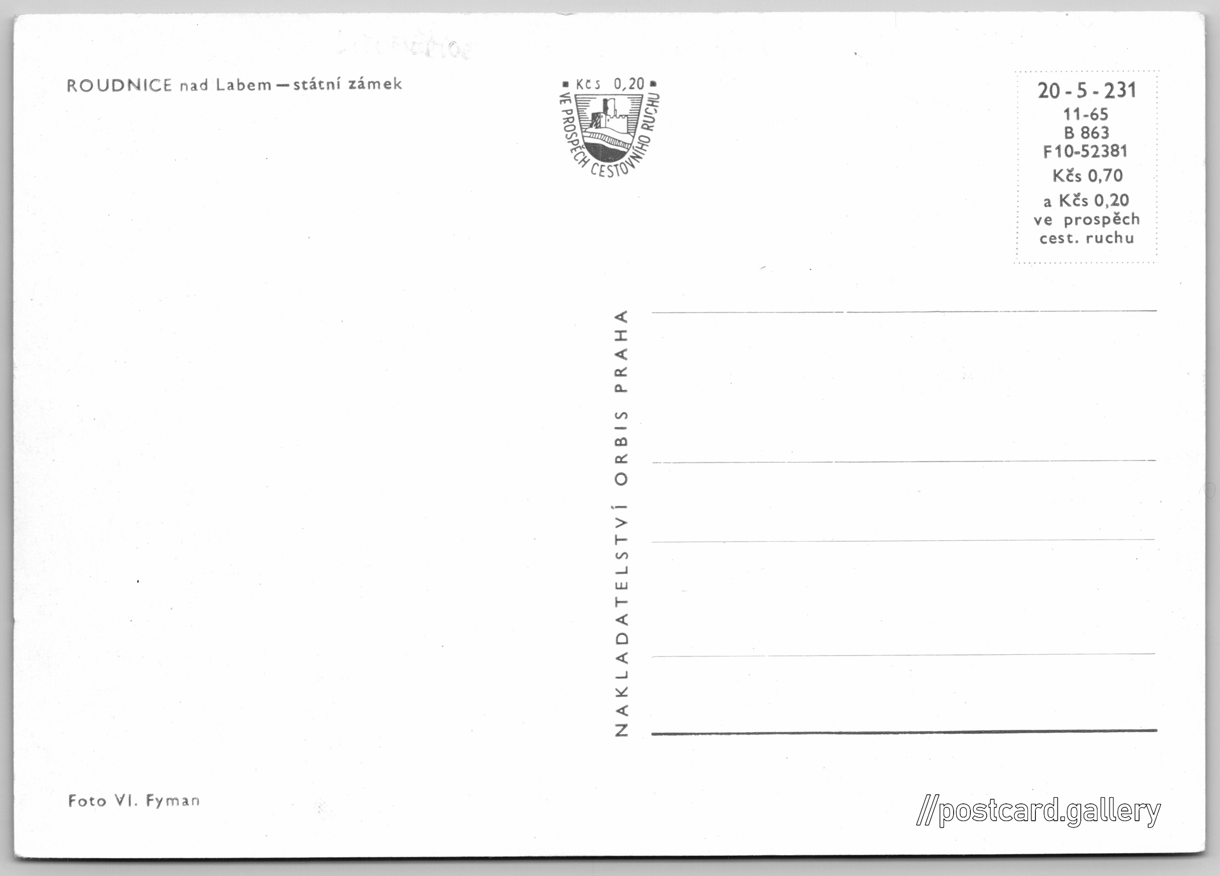 Roudnice nad Labem, státní zámek Pokud chcete vidět pohlednice ve vyšším rozlišení nebo zobrazovat jejich zadní stranu, tak se prosím nejdříve přihlašte Přihlásit Zaregistrovat ROUDNICE nad Labem - státní zámek Jazyk tištěného textu na pohlednici: čeština Zámek Roudnice nad Labem, Zámek, Roudnice nad Labem, Česko ukázat na mapě V blízkém okolí místa zobrazeného na pohlednici lze najít 5 jiných pohlednic. Zobrazit blízké pohlednice Vydavatel: Nakladatelství Orbis (Československo) Rok vydání pohlednice: listopad, 1965 Velikost (š x v) a tvar pohlednice: 148 x 104 mm (5.83" x 4.09"), obdélník Osoby spjaté s touto pohlednicí: Vladimír Fyman(Autor fotografie) Čistá pohlednice (neprošlá poštou) Ceny: Cena pohlednice: 0,70 Kčs (CSK) (+0,20 Kčs přípl. na tur. ruch) Kódy na pohlednici: 20-5-231 11-65 B 863 F10-52381 DiskuseVložit příspěvek Přidat novou složku ... Spravovat složky ...
