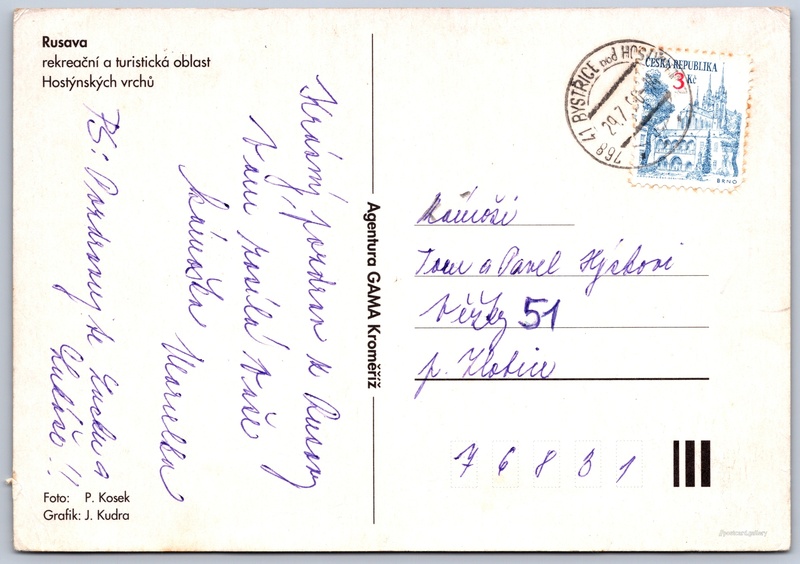Rusava Pokud chcete vidět pohlednice ve vyšším rozlišení nebo zobrazovat jejich zadní stranu, tak se prosím nejdříve přihlašte Přihlásit Zaregistrovat Rusava Rusavarekreační a turistická oblast Hostýnských vrchů Jazyk tištěného textu na pohlednici: čeština Rusava, Kroměříž ukázat na mapě V blízkém okolí místa zobrazeného na pohlednici lze najít 15 jiných pohlednic. Zobrazit blízké pohlednice Vydavatel: Agentura Gama (Česko) Odhadované datum vydání pohlednice: 1997 - 2000 Pomozte nám zpřesnit rok vzniku pohlednice Velikost (š x v) a tvar pohlednice: 151 x 105 mm (5.94" x 4.13"), obdélník Osoby spjaté s touto pohlednicí: Pavel Kosek(Autor fotografie) J. Kudra(Design pohlednice) Prošlá poštou:Datum na razítku: 29.7.2000 Ceny: Vyplacené známky: 3,00 Kč (CZK) DiskuseVložit příspěvek Přidat novou složku ... Spravovat složky ...