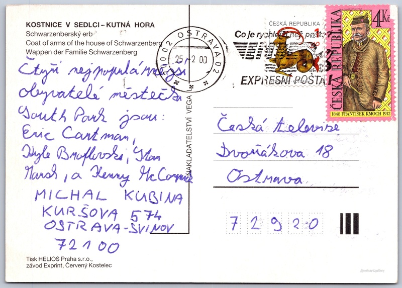 Sedlec, kostnice Pokud chcete vidět pohlednice ve vyšším rozlišení nebo zobrazovat jejich zadní stranu, tak se prosím nejdříve přihlašte Přihlásit Zaregistrovat KOSTNICE V SEDLCI - KUTNÁ HORA- Schwarzenberský erb- Coat of arms of the house of Schwarzenberg- Wappen der Familie Schwarzenberg Jazyky tištěného textu na pohlednici: čeština, angličtina, němčina Kostnice Sedlec, Muzeum, Kutná Hora - Sedlec, Česko ukázat na mapě V blízkém okolí místa zobrazeného na pohlednici lze najít 22 jiných pohlednic. Zobrazit blízké pohlednice Vydavatel: VEGA-L, Libice n/Cidlinou (Česko) Odhadované datum vydání pohlednice: 1997 - 2000 Pomozte nám zpřesnit rok vzniku pohlednice Velikost (š x v) a tvar pohlednice: 148 x 105 mm (5.83" x 4.13"), obdélník Prošlá poštou:Datum na razítku: 25.2.2000 Ceny: Vyplacené známky: 5,00 Kč (CZK) DiskuseVložit příspěvek Přidat novou složku ... Spravovat složky ...
