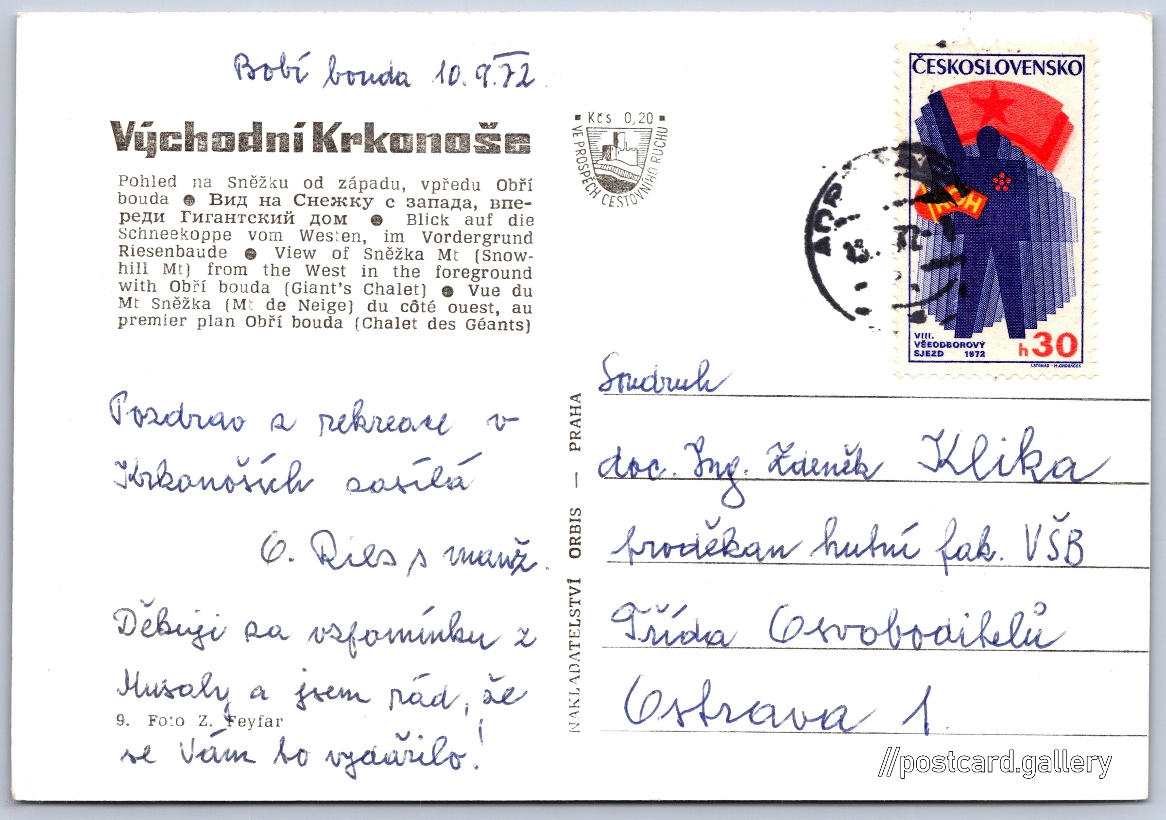 Datum napsání pohledu: 10.9.1972