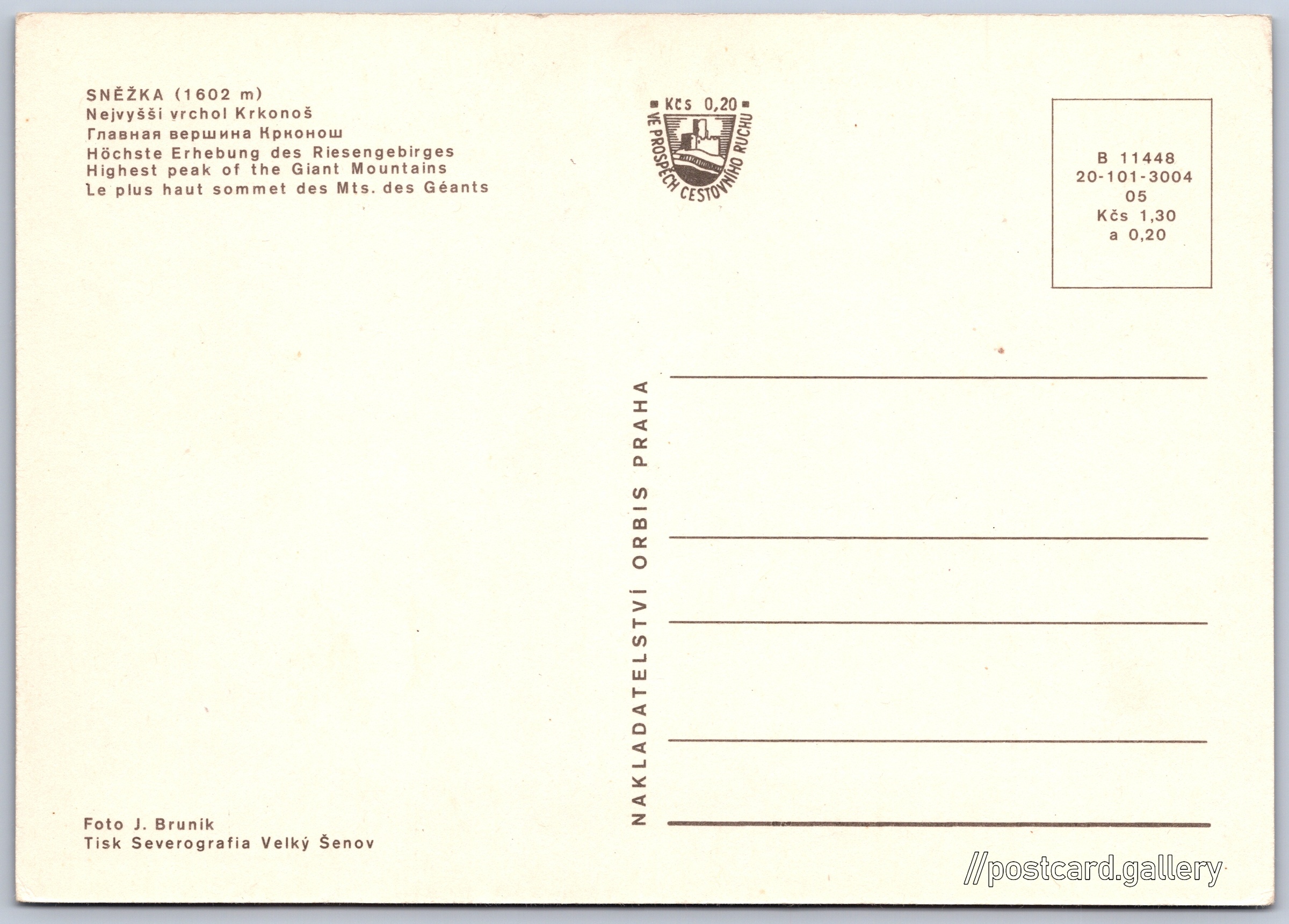 Jazyky tištěného textu na pohlednici: