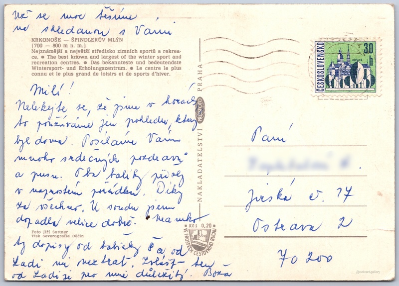 Jazyky tištěného textu na pohlednici: