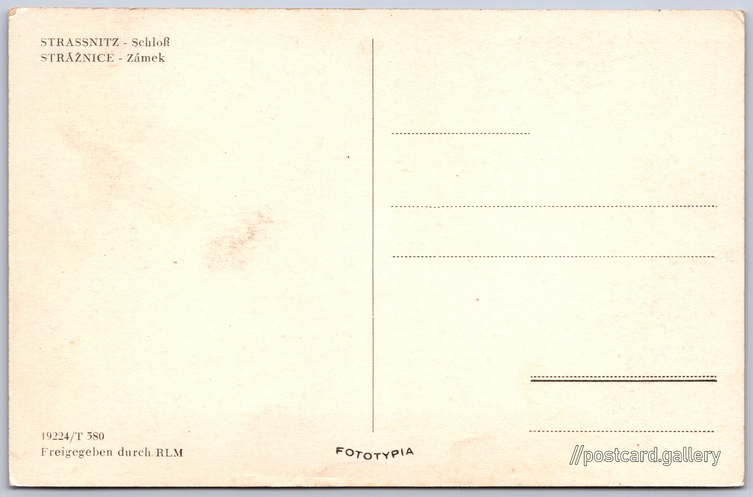 Strážnice, zámek Pokud chcete vidět pohlednice ve vyšším rozlišení nebo zobrazovat jejich zadní stranu, tak se prosím nejdříve přihlašte Přihlásit Zaregistrovat STRASSNITZ - SchloßSTRÁŽNICE - Zámek Jazyky tištěného textu na pohlednici: němčina, čeština Zámek Strážnice, Zámek, Zámek 672, Strážnice, Česko ukázat na mapě V blízkém okolí místa zobrazeného na pohlednici lze najít 1 jinou pohlednici. Zobrazit blízké pohlednice Vydavatel: Fototypia - Vyškov (Československo) Datum vydání není známo Pomozte nám odhadnout datum vzniku pohlednice Velikost (š x v) a tvar pohlednice: 142 x 93 mm (5.59" x 3.66"), obdélník Čistá pohlednice (neprošlá poštou) Kódy na pohlednici: 19224/T 580 DiskuseVložit příspěvek Přidat novou složku ... Spravovat složky ...